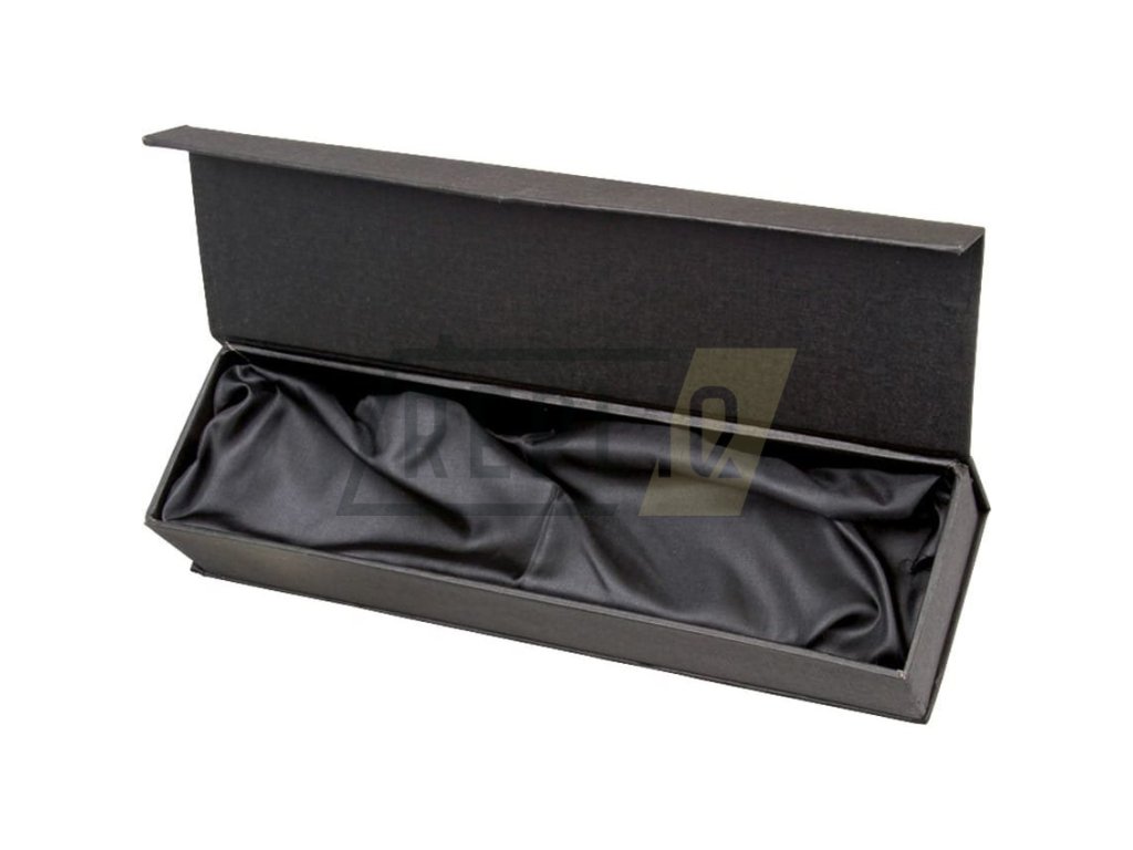 Dárková krabička, papírová, jemně polstrovaná, vyložená elegantní černou látkou.
