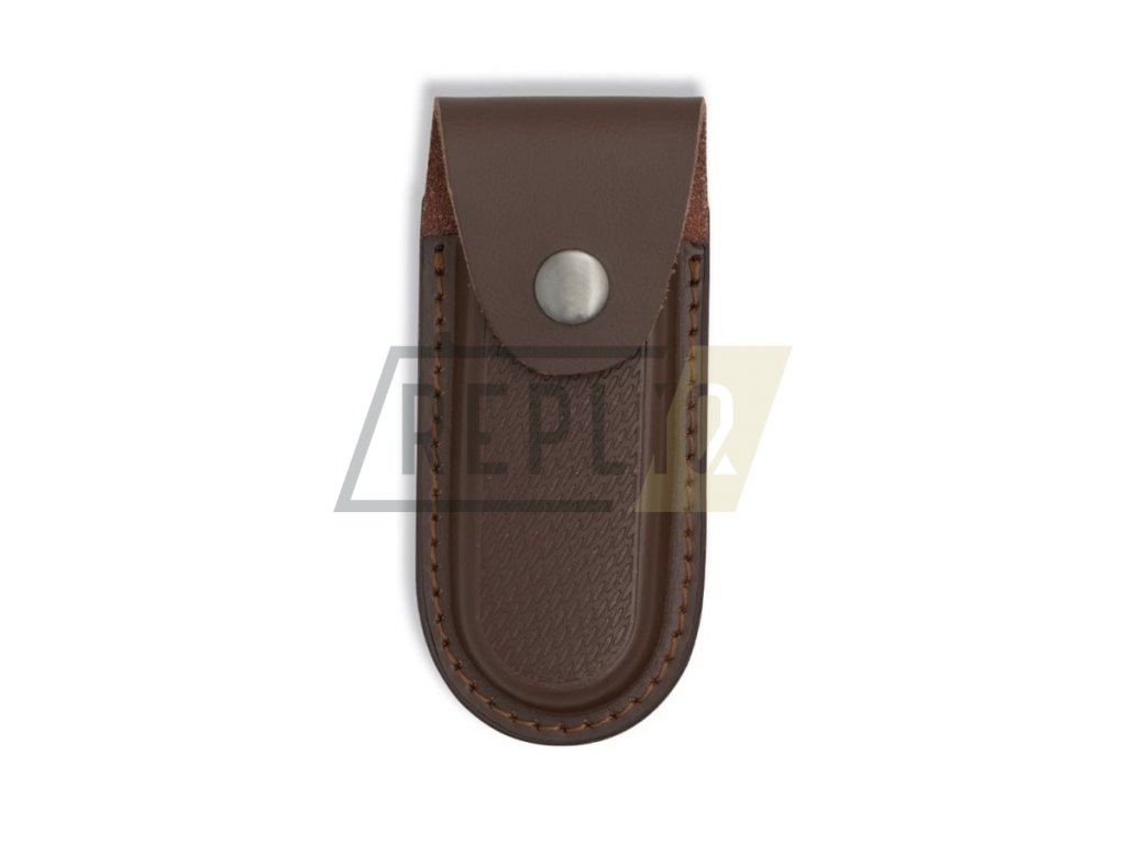 Praktické kožené pouzdro určené k přenášení zavíracích nožů. Nože jsou uvnitř jištěné pomocí kovového druku. Rozměr pouzdra: 15 x 6 cm.