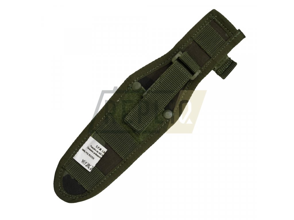 Nůž je v pouzdře zajištěn upínacím páskem se zapínáním na kovový druk. K opsdku /max. šíře 6 cm / ho připevníte pomocí pásku se zapínáním na suchý zip, lze nastavit podle šířky opasku. Pouzdro je opatřeno kapsou na druk jištěnou suchým zipem. Nové zboží. Výroba S.P.M. Liberec