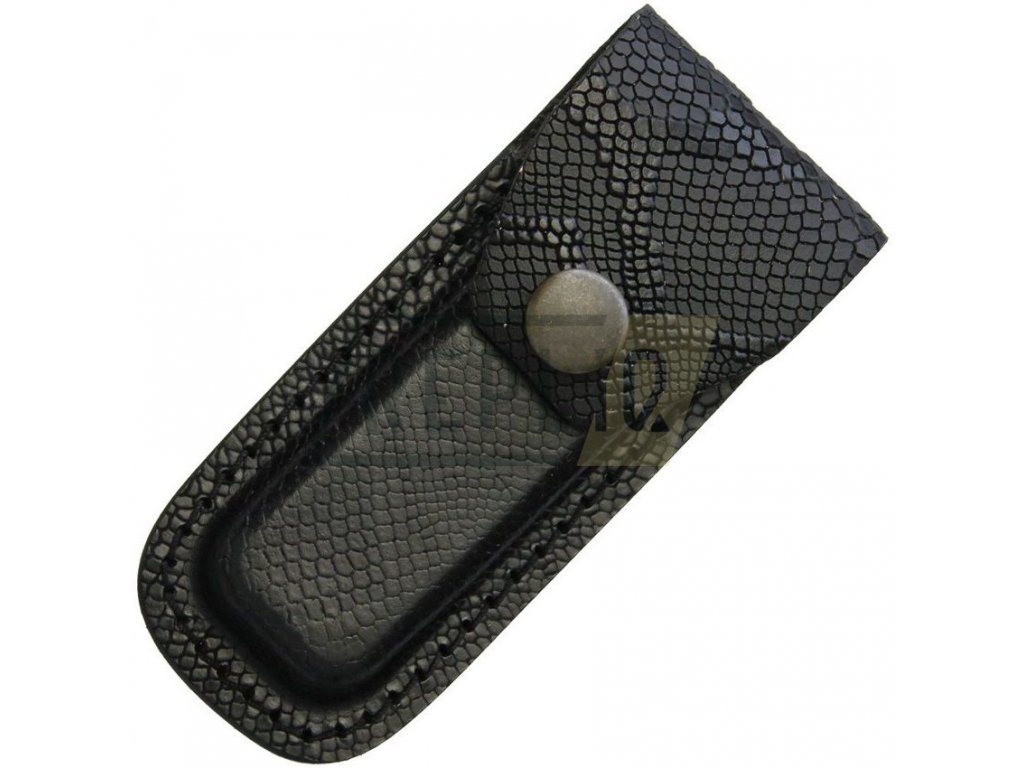 Opaskové pouzdro na zavírací nůž s povrchovou strukturou připomínající hadí kůži.