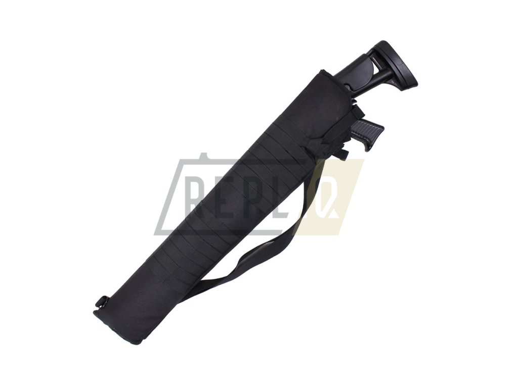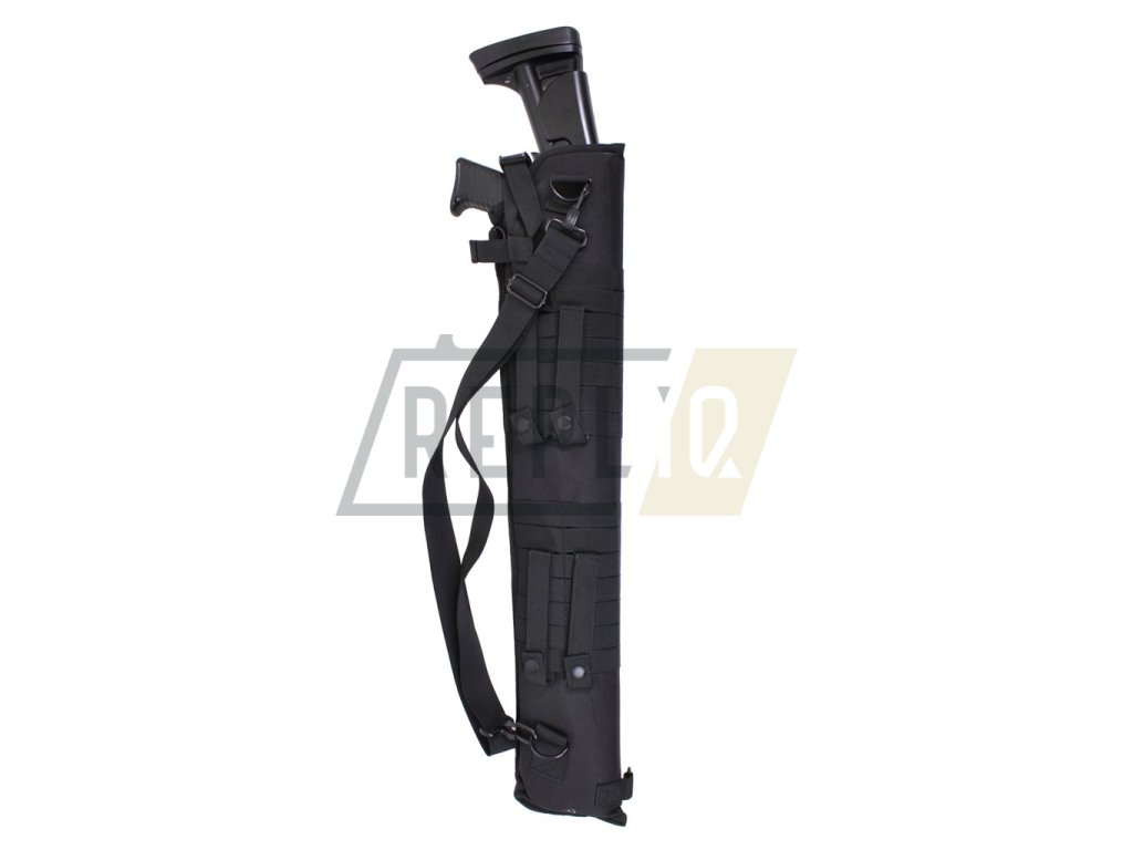 Odolné pouzdro určené na přenášení dlouhé zbraně. Je vyrobené z odolného materiálu (kombinace polyesteru/nylonu) a je perfektní volbou pro vojáky, lovce, hráče airsoftu apod. Na pouzdru naleznete dva D kroužky určené k upevnění ramenního popruhu, modulární vazbu standardu MOLLE/PALS určenou k fixaci dodatečného kompatibilního vybavení a dva odtokové otvory. Pouzdro je z vnitřní strany polstrováno tak, aby nedošlo k poškození vaší zbraně při přenášení. Zbraň se dá navíc fixovat dodatečným popruhem s fastex přezkou.