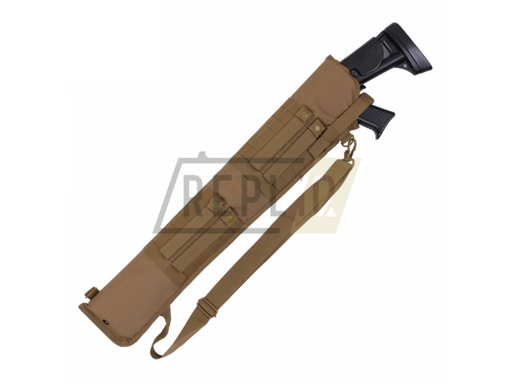 Odolné pouzdro určené na přenášení dlouhé zbraně. Je vyrobené z odolného materiálu (kombinace polyesteru/nylonu) a je perfektní volbou pro vojáky, lovce, hráče airsoftu apod. Na pouzdru naleznete dva D kroužky určené k upevnění ramenního popruhu, modulární vazbu standardu MOLLE/PALS určenou k fixaci dodatečného kompatibilního vybavení a dva odtokové otvory. Pouzdro je z vnitřní strany polstrováno tak, aby nedošlo k poškození vaší zbraně při přenášení. Zbraň se dá navíc fixovat dodatečným popruhem s fastex přezkou.