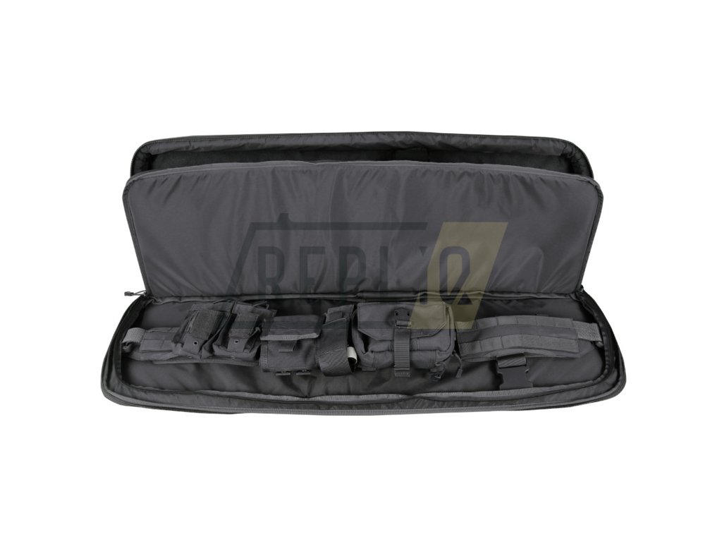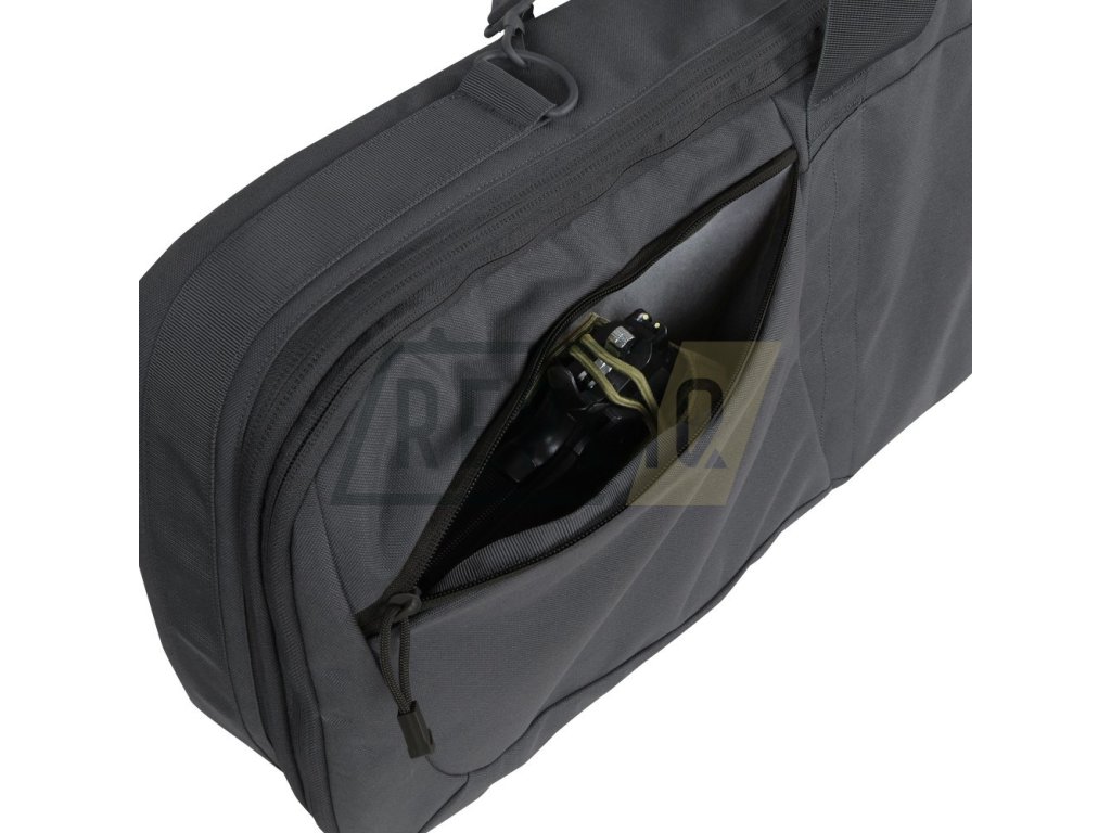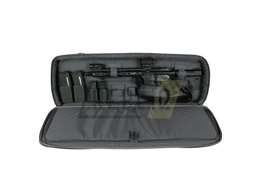 Hlavní prostor, který snadno uzavřete zipem, je dostatečně objemný na to, aby pohodlně pojmul dlouhou zbraň do délky až 91cm. Vnitřek hlavního prostoru je také pokryt smyčkovou částí VELCRO panelu, což umožňuje přidat značné množství insertů. Na vnější straně tašky najdete dvě kapsy uzavírané zipem, které poslouží na přenášení nutného vybavení. K tašce je dodáván odepínatelný ramenní popruh.