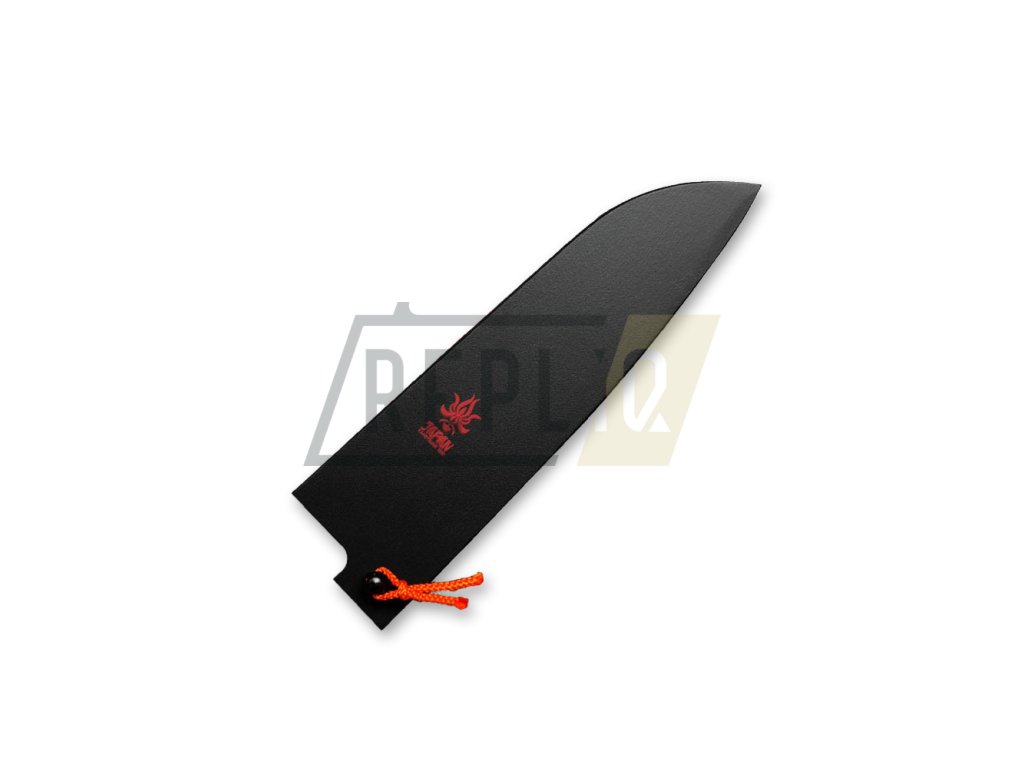 Přírodní dřevěná pochva pro nůž Santoku. Dřevěné pouzdro Saya je perfektní ochranou pro nože. Je z měkkého dřeva, odolná vůči vlhkosti a neobsahuje žádné pryskyřice. Kryt/Saya vám pomůže zabránit poškození nožů během přepravy. Sayu doporučujeme všem zákazníkům, kteří často přenáší nože.