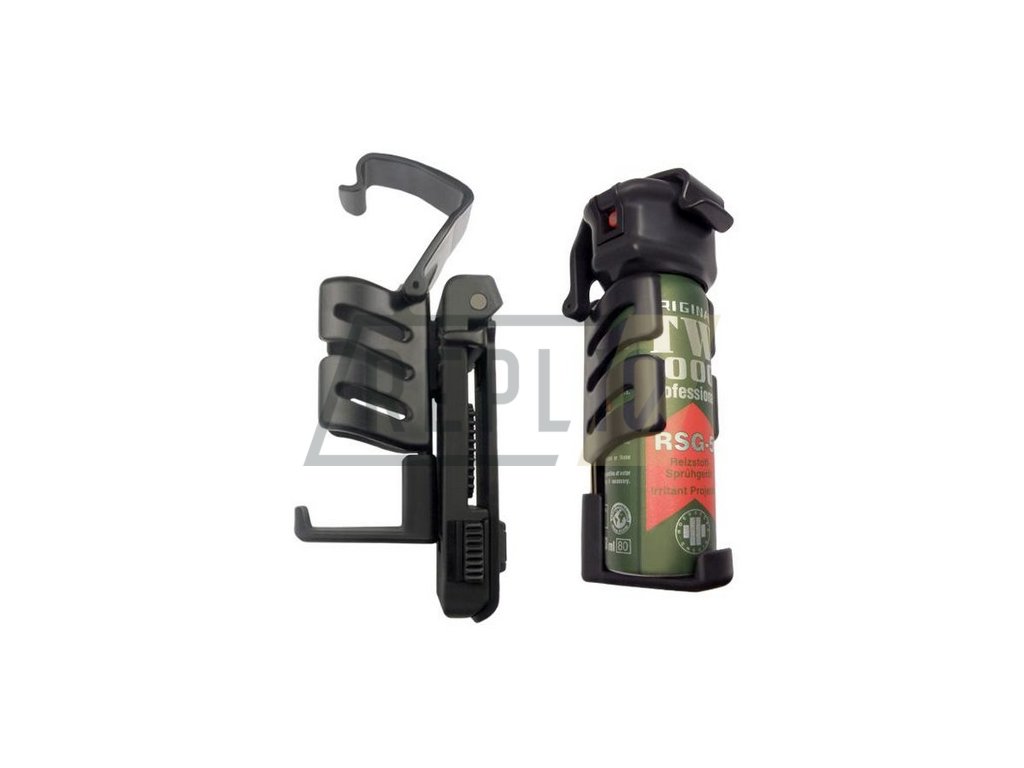 Vzdálenost mezi opaskem a sprejem je ale při použití tohoto typu spony menší, lze také upevnit i na nosný M.O.L.L.E. system. Sprej lze vůči opasku otočit v rozsahu 360 stupňů v 16 aretovaných polohách.