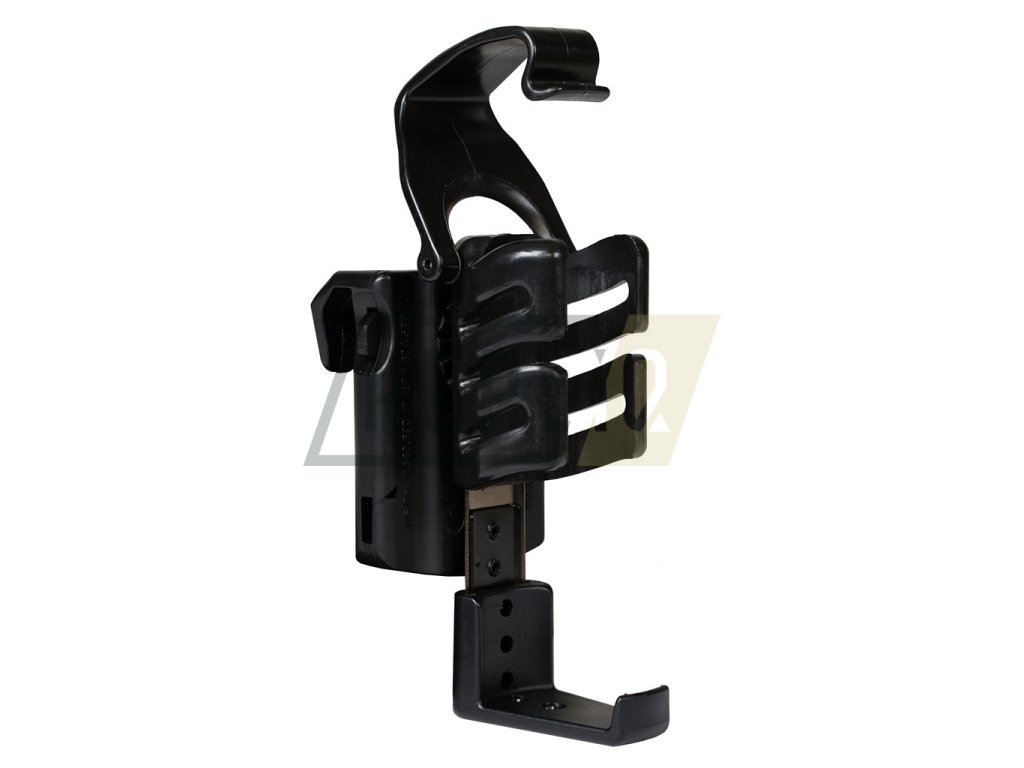 Speciální patentovaná upínací spona dovoluje rychlé nasazování pouzdra na opasek jednou rukou. Bez nutnosti opasek odepnout. Sprej lze vůži opasku otočit v rozsahu 360 stupňů v 16 aretovaných polohách. Do pouzdra lze vložit spreje o průměru nádobky od 35 mm do 38 mm.