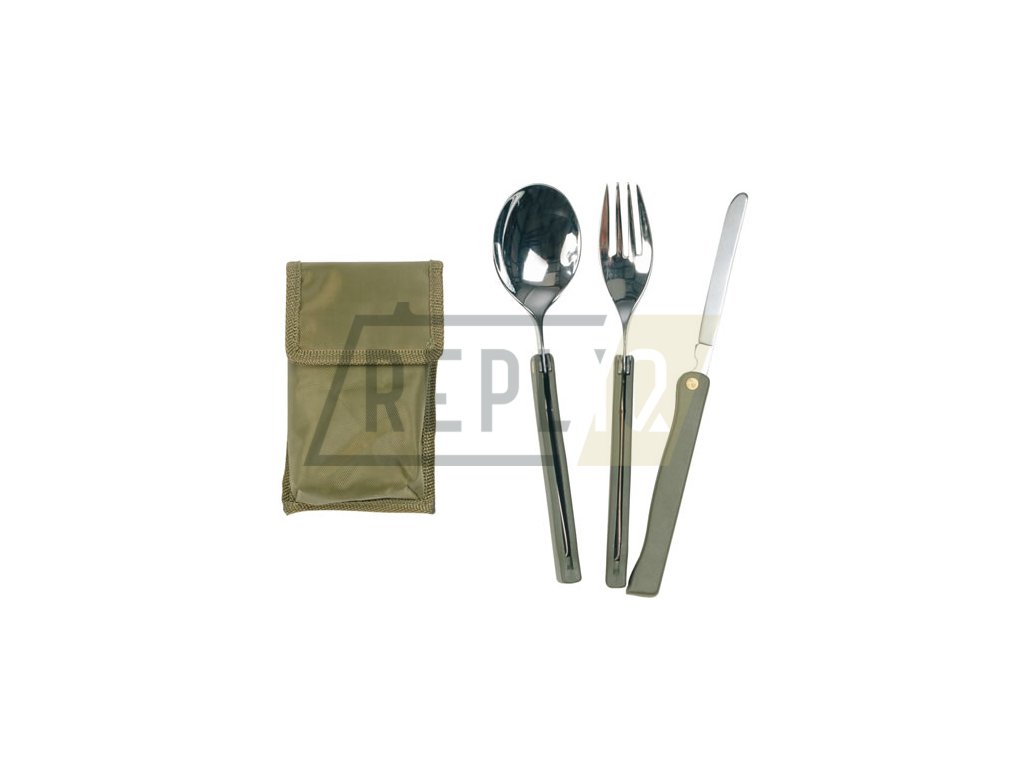Trojdílný skládací nerezový příbor, střenky jsou plastové. Dodáváno včetně nylonového pouzdra. Délka cca 20 cm, celková hmotnost 155 g.