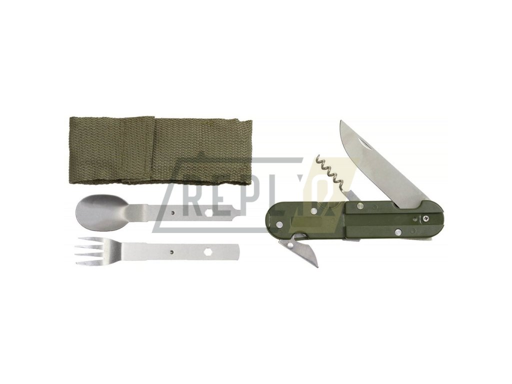 - obsahuje lžíci, nůž, vidličku, vývrtku a otvírák