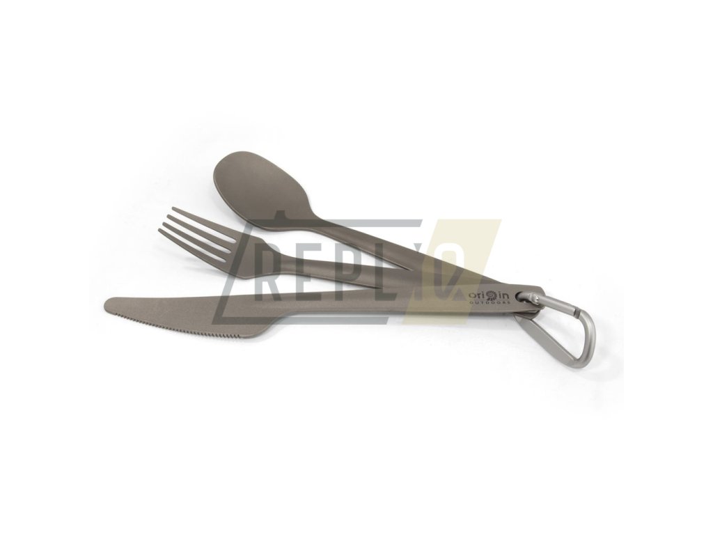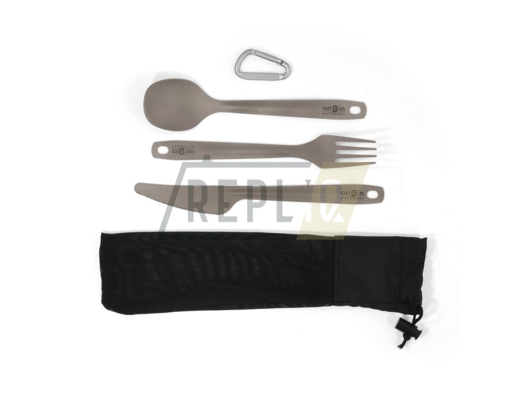 Elegantní titanové příbory z čistého a nerezového titanu jsou dodávány s karabinou pro snadné připevnění při přepravě. Součástí balení je také praktické nylonové pouzdro.