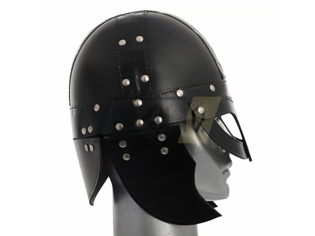 Brýlová vikinská severská helma z kůžeUpozornění: Toto je pouze dekorativní předmět, nevhodný k reálnému použití!