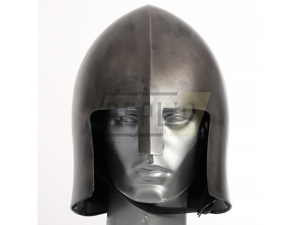 Normanská helma s protáhlým zvonemUpozornění: Toto je pouze dekorativní předmět, nevhodný k reálnému použití!