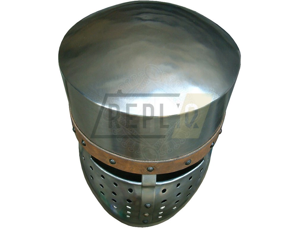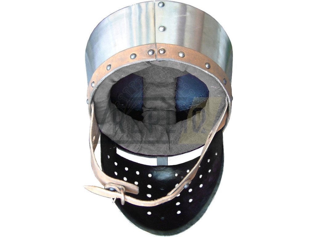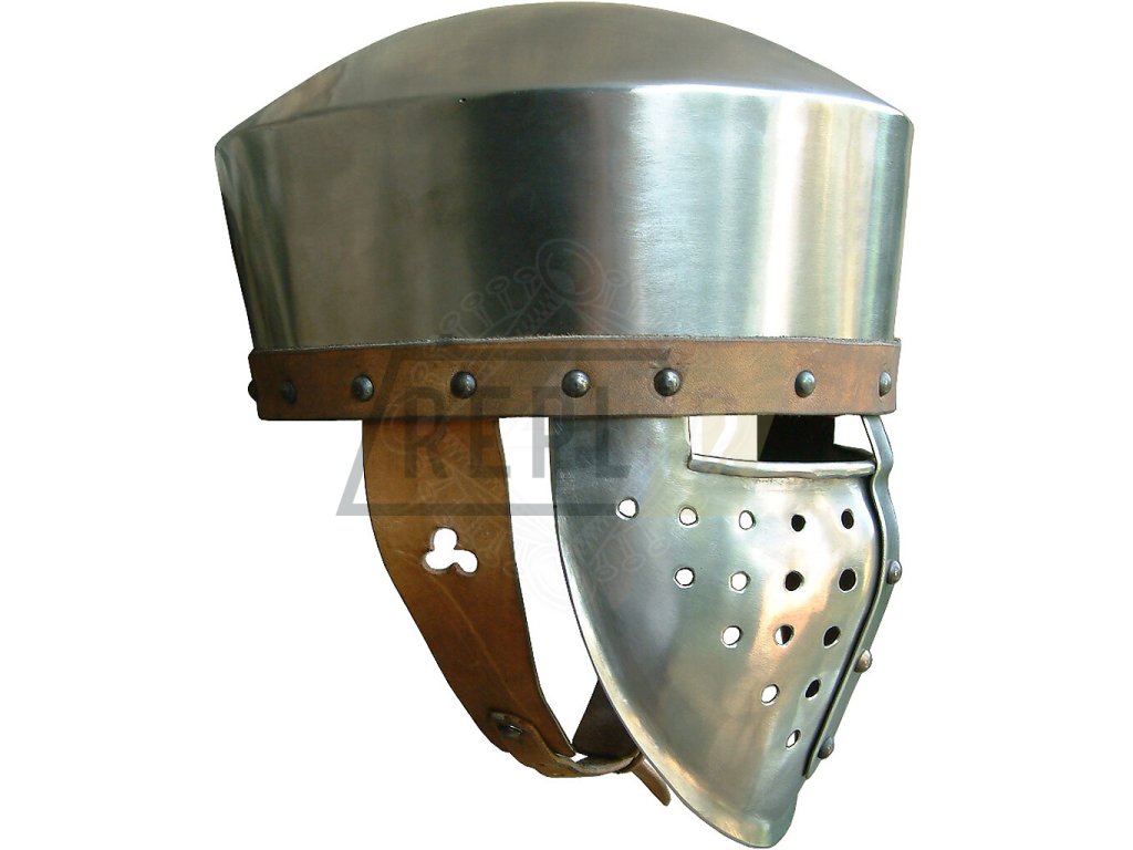 Normanská kalota s obličejovým štítemTuto helmu Vám můžeme vyrobit přesně na míru podle údajů ‘1a’ až ‘1j’ v této tabulce rozměrů.