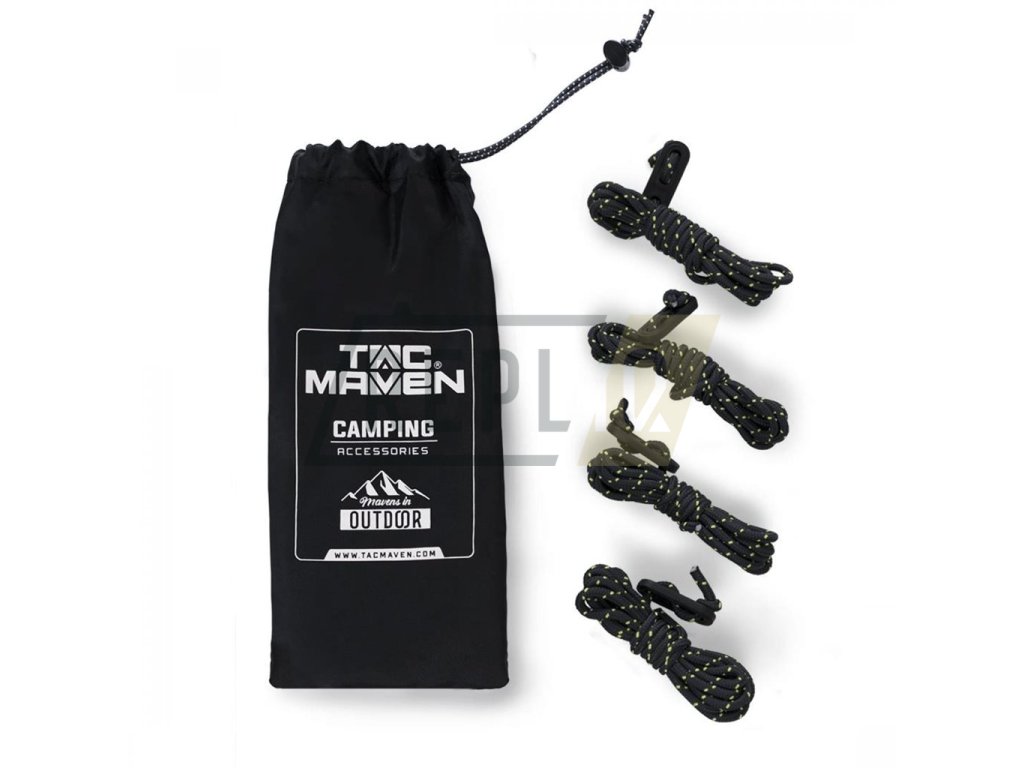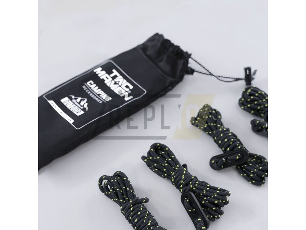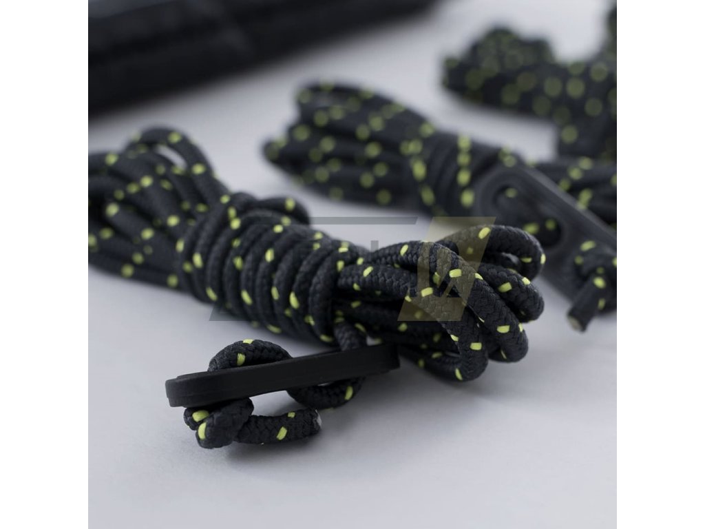 Set čtyř reflexních šňůr s integrovaným napínákem. Šňůry jsou vyrobené ze sedmi polyesterových pramenů o velmi vysoké odolnosti. Každá šňůra má délku 2,2 metru, což je ideální pro kotvení stanů, plachet, hamak a dalšího kempingového vybavení. Na jednom konci je umístěn napínák, který umožňuje rychlé a spolehlivé nastavení napnutí. Integrované reflexní prvky zvyšují viditelnost a bezpečnost při nočním použití. Dodáváno s praktickým přepravním obalem.