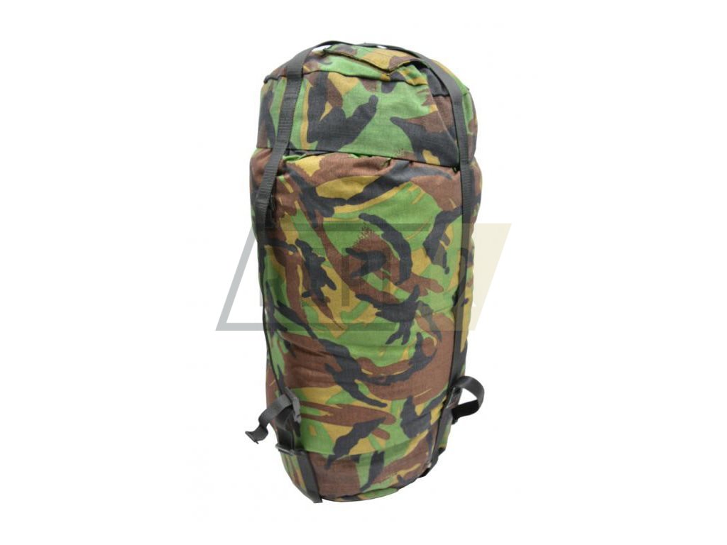 Kompresní obal na spací pytel z výprodeje holandské armády. Pytel je vyrobený z velmi odolného materiálu, lze jej využít i pro přepravu jiných věcí, než je spacák. Kompresní popruhy na stažení. Výška cca 70 cm, průměr cca 30 cm. Materiál - 100 % polyamid. Použité zboží v dobrém stavu.