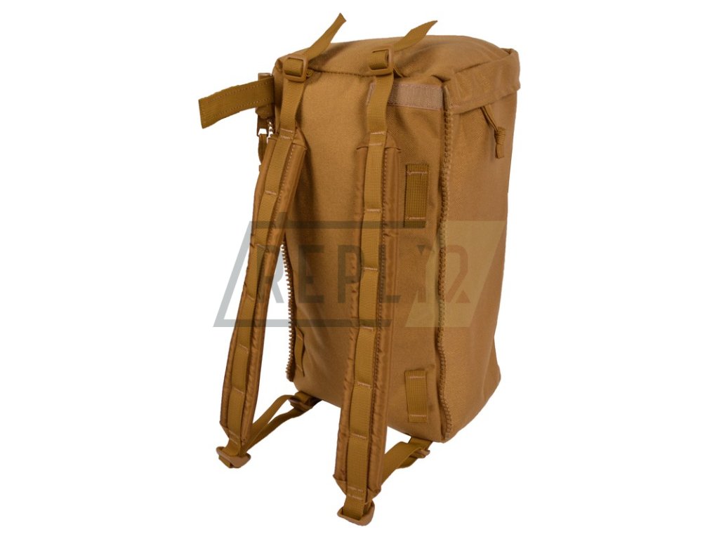 Samostatně může jedna kapsa sloužit jako kompaktní batoh (dodávají se včetně odepínatelných polstrovaných popruhů), sepnutím dvou kapes získáte větší 20litrový batoh.