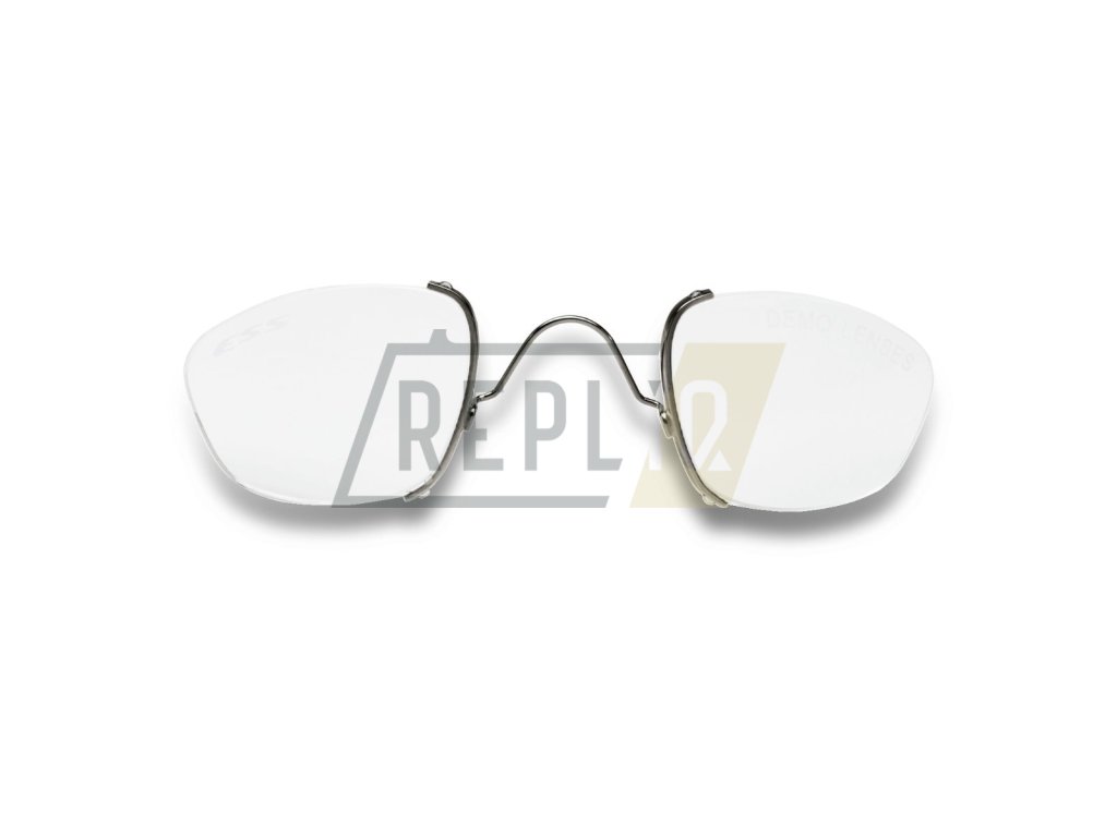 Dioptrická vložka s kovovým rámem pro brýle značky ESS. Vložka obsahuje pouze DEMO skla. Dioptrická skla je možné nechat nainstalovat v jakémkoli obchodu s oční optikou. Tato odolná vložka pro dioptrická skla umožňuje instalaci dioptrických skel v rozmezí korekce zraku +/- 6. Vložka se dodává včetně nosníku.