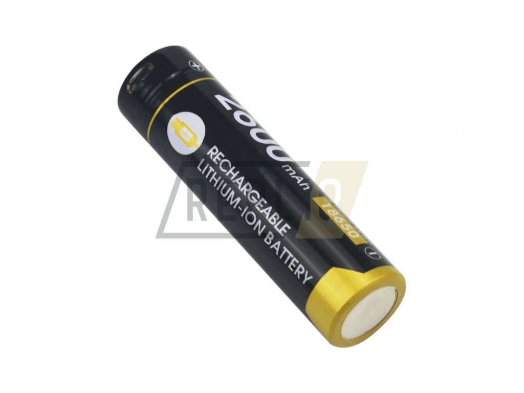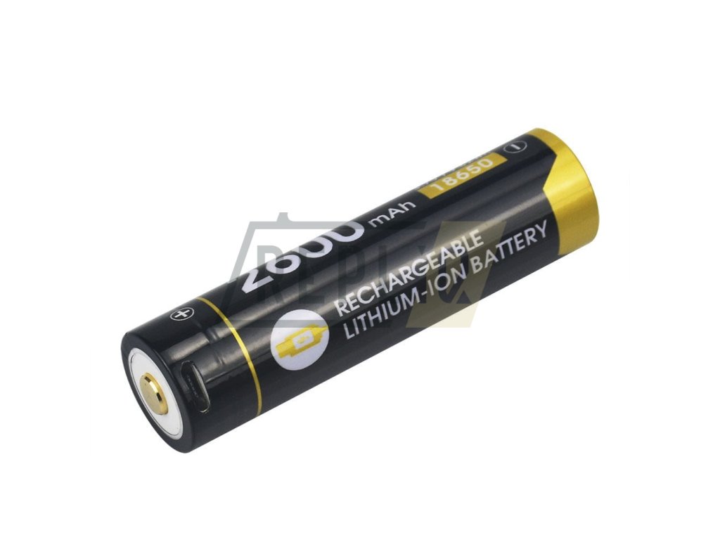 Kvalitní Li-Ion (lithiová) baterie typu 18650 se zabudovanou ochranou proti přepětí. Unikátní konstrukce baterie zajišťuje vysokou odolnost vůči pádům. Baterie je opatřena micro USB portem pro přímé nabíjení.