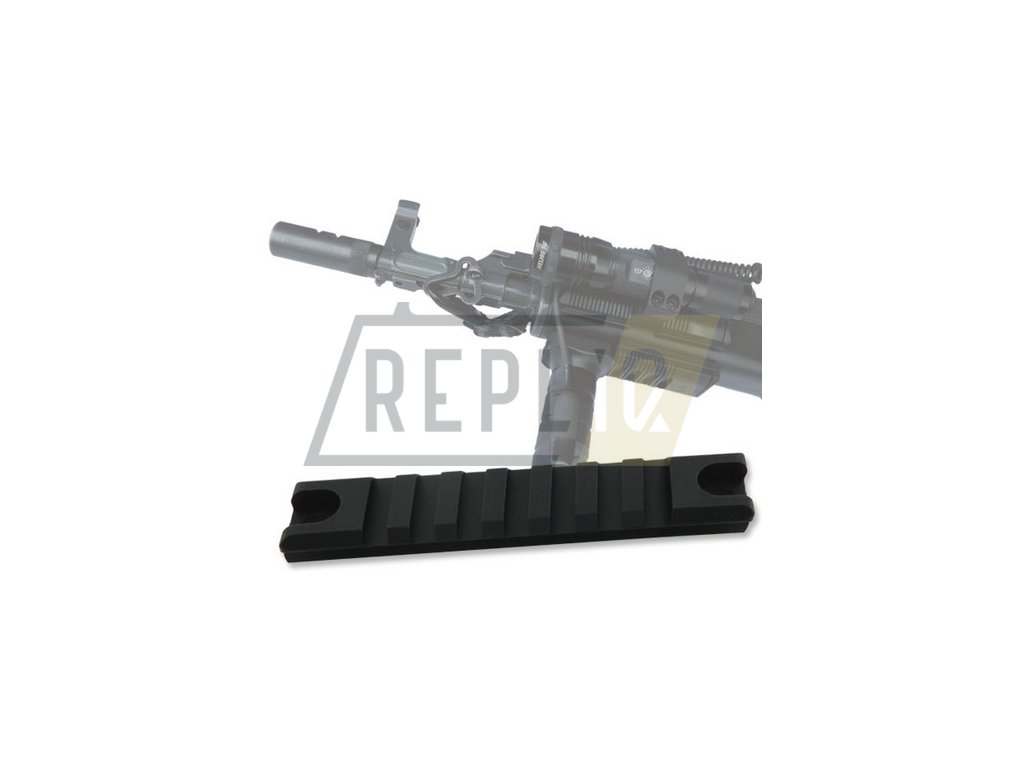 RAIL standardu NATO určený pro upevnění dalšího možného příslušenství na zbraň. Tvrzený dural typu 6061 zaručuje vysokou pevnost, houževnatost a odolnost proti oxidaci (i ve slané vodě).Lze upevnit na různé zbraně, např. na samopal Sa 58 nebo AK-47, čímž se podstatně zvýší jeho bojová hodnota. Délka 98 mm, šířka 21 mm, výška 9 mm, 33 g.