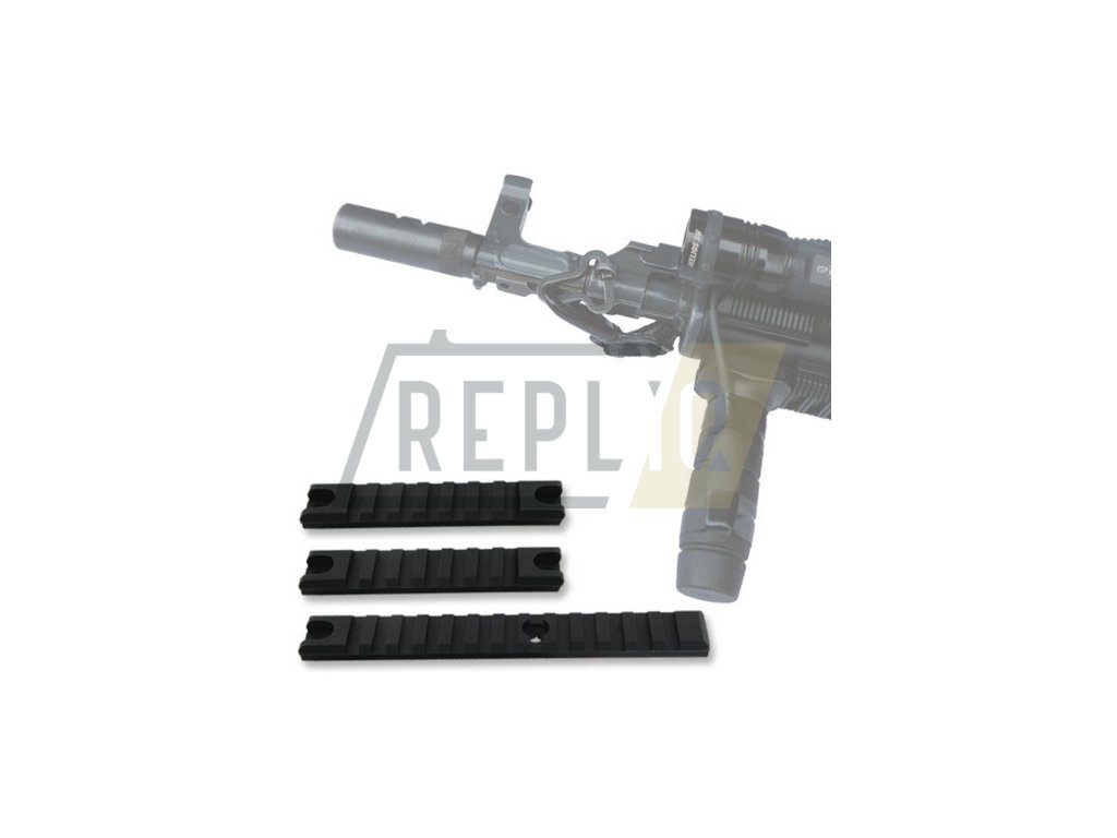 RAIL standardu NATO určený pro upevnění dalšího možného příslušenství na zbraň. Tvrzený dural typu 6061 zaručuje vysokou pevnost, houževnatost a odolnost proti oxidaci (i ve slané vodě).Lze upevnit na různé zbraně, např. na samopal Sa 58 nebo AK-47, čímž se podstatně zvýší jeho bojová hodnota. Délka: 1 x kus 155 mm, šířka 21 mm, výška 9 mm, hmotnost 56 g 2 x kus 98 mm, šířka 21 mm, výška 9 mm, hmotnost 38 g