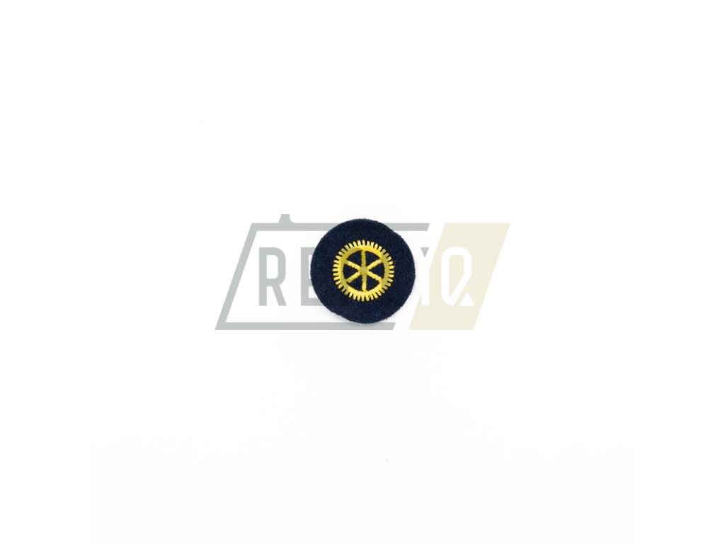 Originální NVA (východoněmecká) nášivka námořnictva - technického specialisty. Zlaté vyšití na tmavě modrém filcovém podkladu.