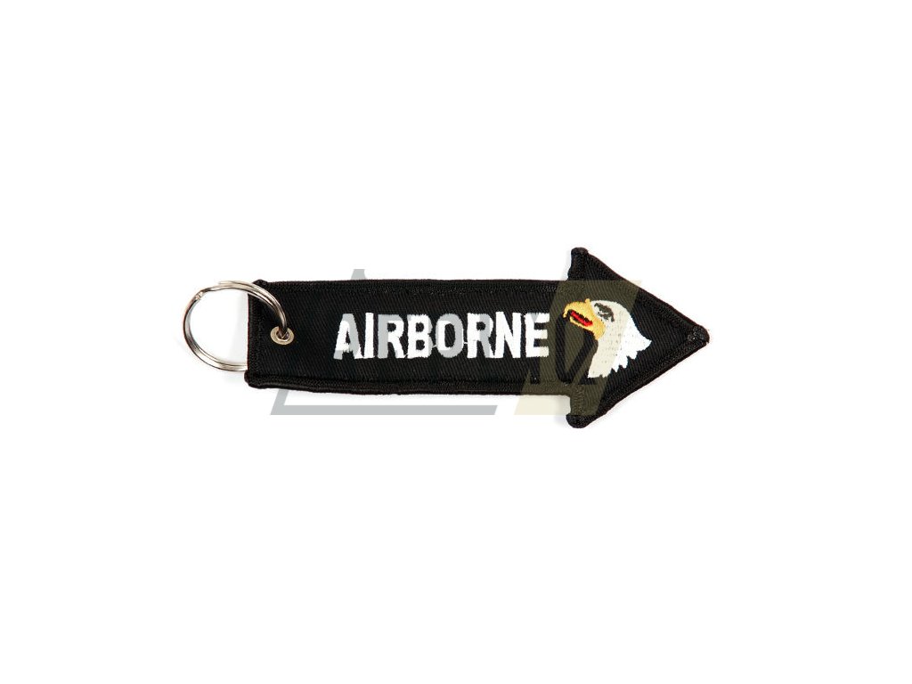 Klíčenka s vyšitým nápisem AIRBORNE a s orlem.