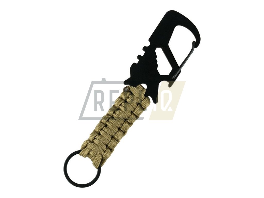 Multifunkční EDC klíčenka s kovovou karabinkou a nylonovou paracordovou šňůrou. Karabina je opatřena integrovaným otvírákem na láhve a kličem.