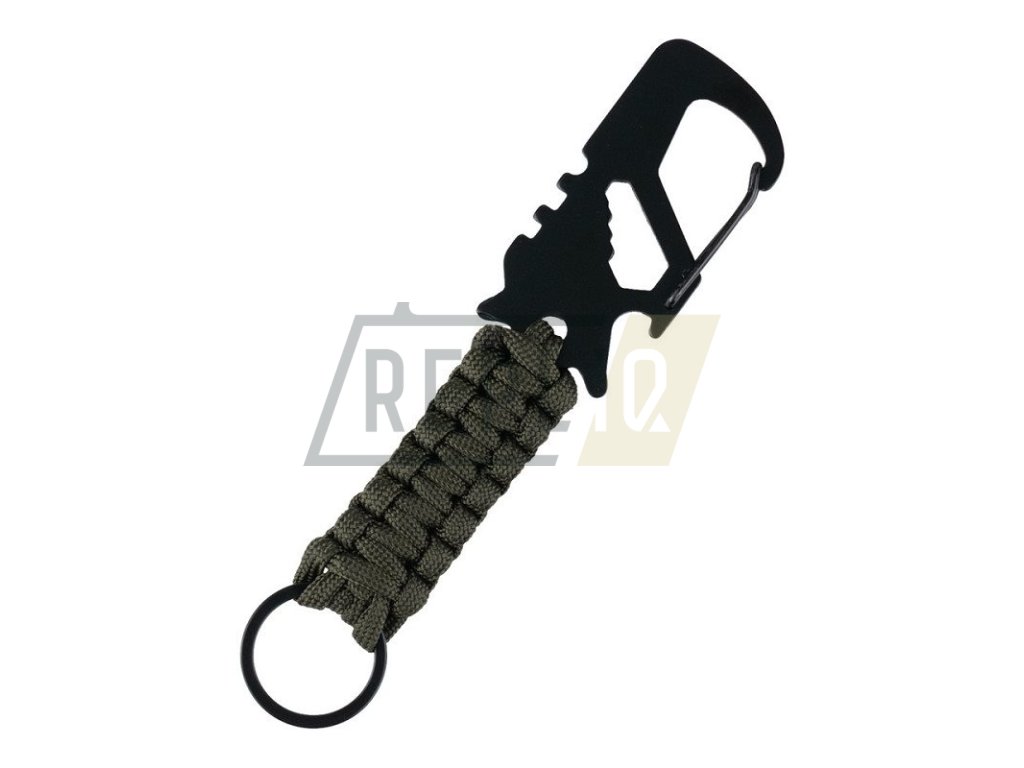 Multifunkční EDC klíčenka s kovovou karabinkou a nylonovou paracordovou šňůrou. Karabina je opatřena integrovaným otvírákem na láhve a kličem.