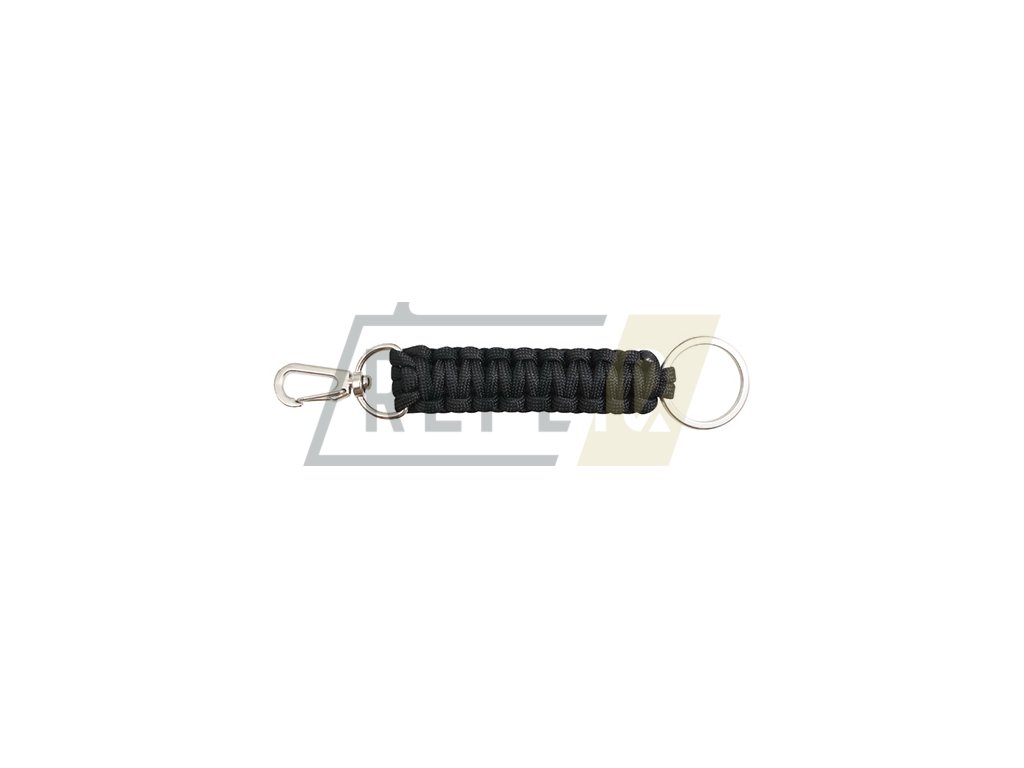 Klíčenka z para šňůry a s 6cm kovovou karabinou. Délka 9 cm, šířka 2,3 cm, celková délka šňůry po rozpletení 1,4 m.