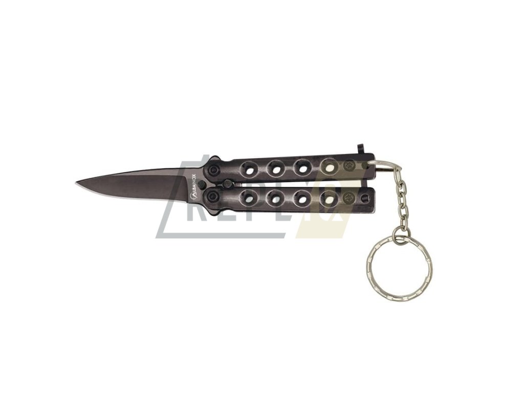 Tento malý balisong nůž od značky Albainox je zajímavou formou přívěšku na klíče. Čepel o délce 4,1 cm je vyrobena z oceli 3Cr13Mov s černou povrchovou úpravou, která zajišťuje stylový vzhled i odolnost. Rukojeť z oceli o délce 5,3 cm, celková délka nože činí 9,4 cm.