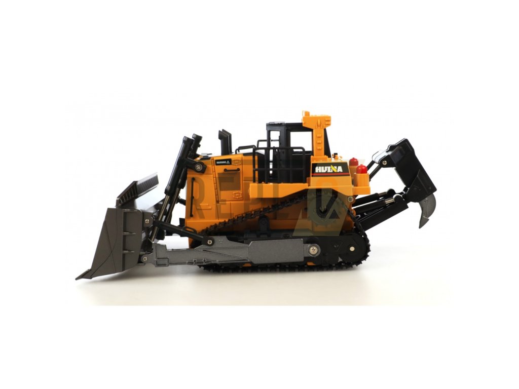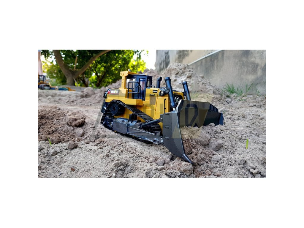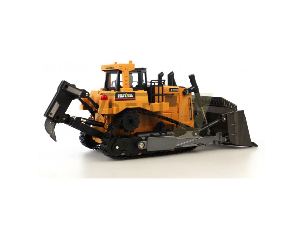 NÁDHERNĚ ZPRACOVANÝ PÁSOVÝ BULDOZER 1:16, VÁS ZAUJME NEJEN SVÝM SLUŠIVÝM DESIGNEM, KVALITOU ZPRACOVÁNÍ, ALE TAKÉ MOŽNOSTÍ OVLÁDAT SPOUSTU FUNKCÍ VČETNĚ FUNKČNÍ RADLICE A HÁKU.