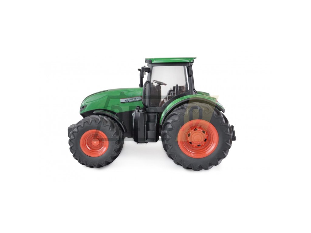Velice pěkně zpracovaný RC model traktoru s přívěsem na dálkové ovládání. Provedení modelu je opravdu krásné, předností modelu jsou také velká široká kola, přední světla a zvuk motoru. Další přednost je pomalá jízda, zpřevodováno do síly tak jak to u traktoru má být! Slušná vydrž akumulátoru umožňuje jízdu až 35 minut. Akumulátor v traktoru je měnitelný. Ovladač modelu nemá anténu ani páčky a to je dobré, protože děti nemají co ulomit. Traktor svítí a vydává realistické zvuky, jezdí vpřed, vzad, doleva, doprava. Poháněn je na veliká zadní kola, která jsou vybavena měkkými pneumatikami z pryže s hlubokým vzorkem. Kabina řidiče je vyladěná do posledního detailu a kompletně uzavřená. DEMO funkce předvede bez vašeho zásahu pohyby traktoru. Sklápěcí přívěs je ovládán ručně. Ovládání traktoru je velice snadné, pomocí páčkového ovladače na frekvenci 2,4Ghz. Potřebujete do něj 2xAAA baterie. Akumulátor Li-ion 500mAh s JST konektorem nabijete jednoduše USB nabíječkou. Udrží model v chodu až 35 minut. Dosah vysílače je cca 20 metrů.