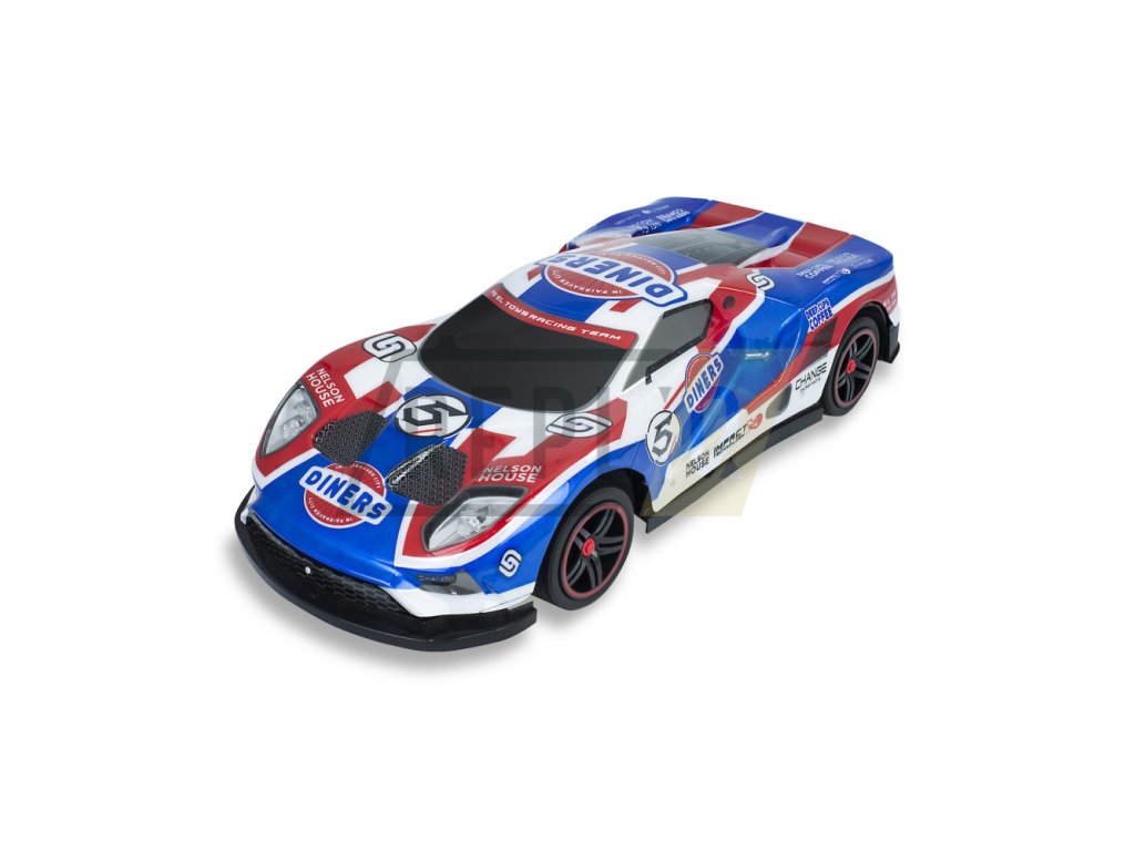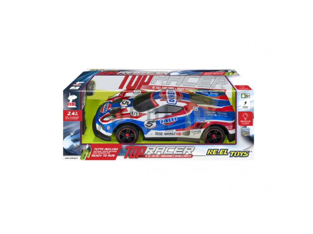 Kvalitně zpracovaný vzhled modelu Top Racer vás nadchne. Model má gumové pneumatiky, díky kterým mají až neskutečnou přilnavost. Model se ovládá volantovým 2.4 GHz ovladačem, díky kterému je přenos nezarušitelný. Díky pružné karoserii a přednímu a zadnámu spojleru je model velmi ododlný proti poškození nárazem. Díky efektnímu LED osvětlení si lze jízdu užít i v noci. Model je vhodný jak do vnitřních, tak venkovních prostor. Stačí vložit baterie a vyrazit.