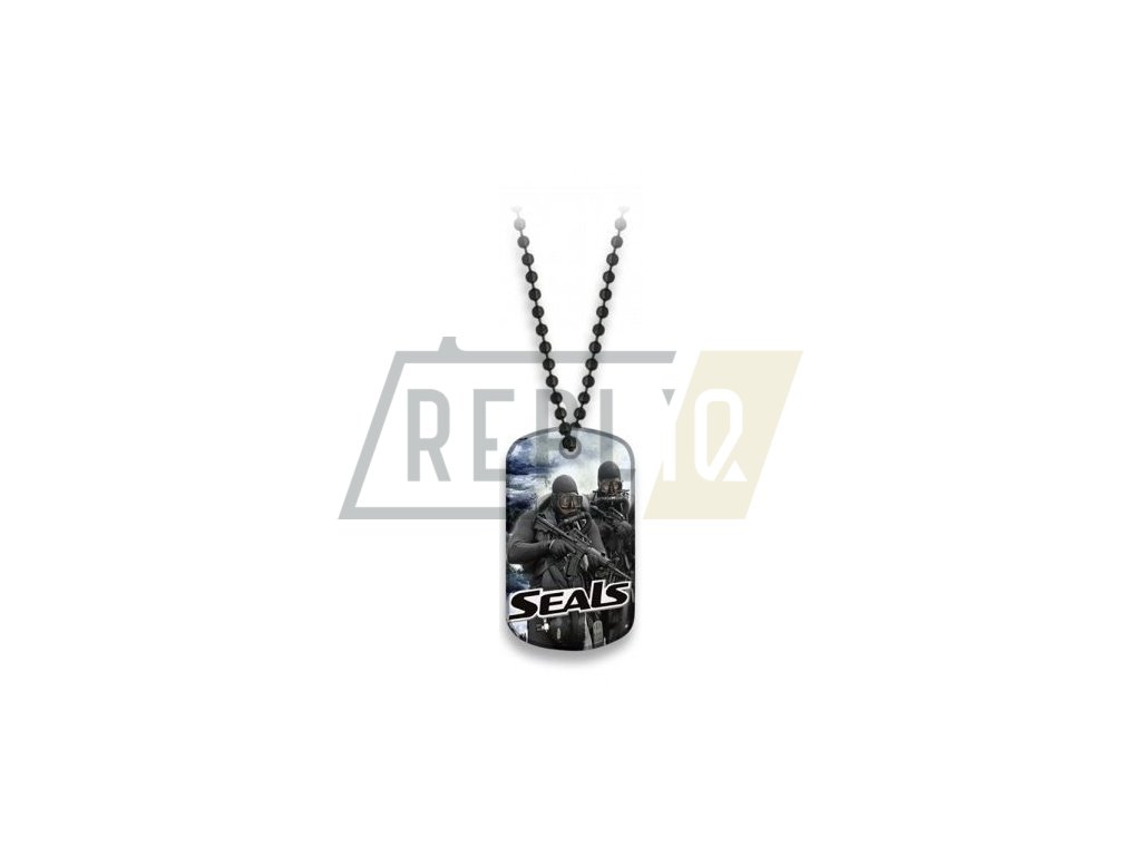 SEALs jsou Námořní, vzdušné a pozemní týmy Námořnictva Spojených států amerických. Součástí je černý korálkový řetízek. Řetízek můžete zkrátit/sundat a známku nosit nejenom na krku, ale třeba i jako přívěšek na klíčích.