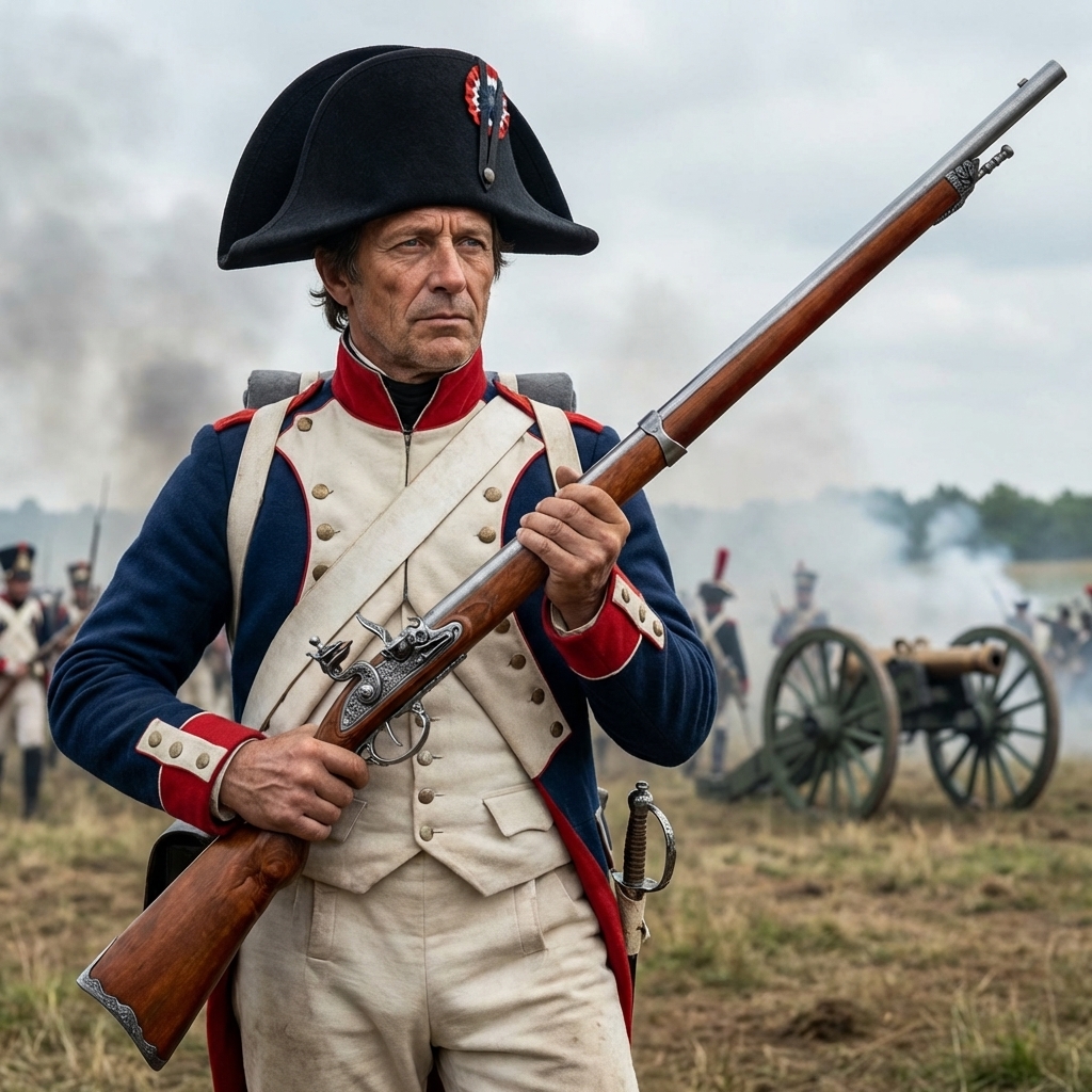 Tato replika francouzské vojenské pušky z roku 1807 představuje typickou pěchotní zbraň používanou během napoleonských válek. Podobné pušky byly standardní výzbrojí vojáků francouzské armády v době vlády Napoleon Bonaparte, kdy Francie patřila mezi největší vojenské mocnosti Evropy.