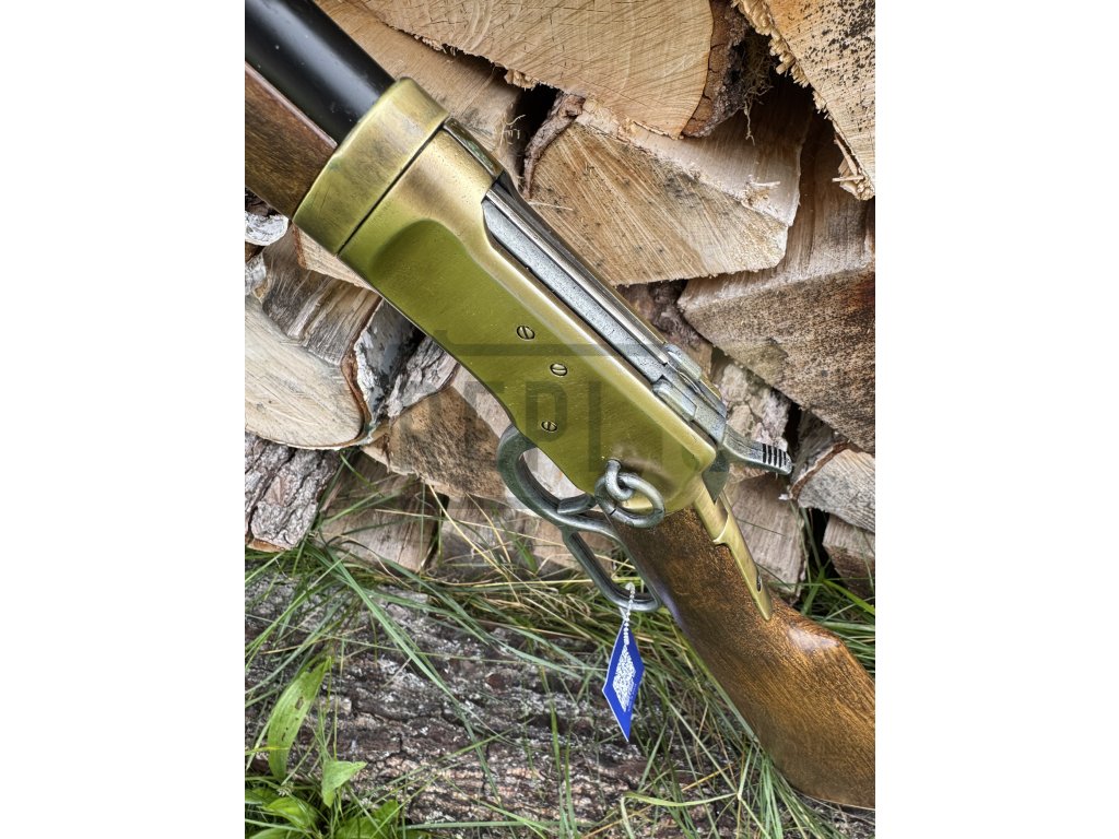 Replika pušky Winchester 1892 v mosazném provedení s možností nabití zbraně náboji, do kterých lze vložit kapslíky pro imitaci střelby. Jedná se o skvělou repliku od společnosti Kolser. Zbraň je dodávána s 6ks nábojů, které lze do pušky vložit a simulovat tak nabití zbraně. Puška vyhazuje nábojnice stejně tak jako ostrý model zbraně. Navíc lze náboje osadit kapslíky a simulovat tak střelbu. Puška je vyrobena z kovu a pryskyřice simulující dřevo, za účelem prodloužení její životnosti.