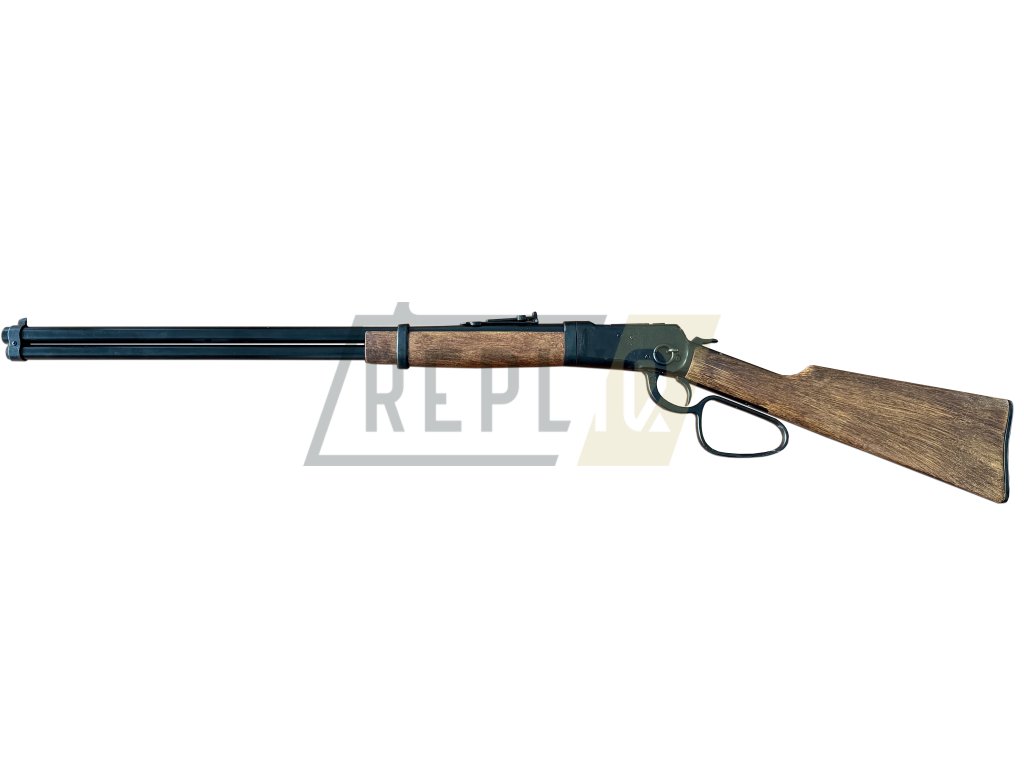 Replika pušky Winchester 1892 v černém provedení s možností nabití zbraně náboji, do kterých lze vložit kapslíky pro imitaci střelby. Jedná se o skvělou repliku od společnosti Kolser. Zbraň je dodávána s 6ks nábojů, které lze do pušky vložit a simulovat tak nabití zbraně. Puška vyhazuje nábojnice stejně tak jako ostrý model zbraně. Navíc lze náboje osadit kapslíky a simulovat tak střelbu. Puška je vyrobena z kovu a pryskyřice simulující dřevo, za účelem prodloužení její životnosti.