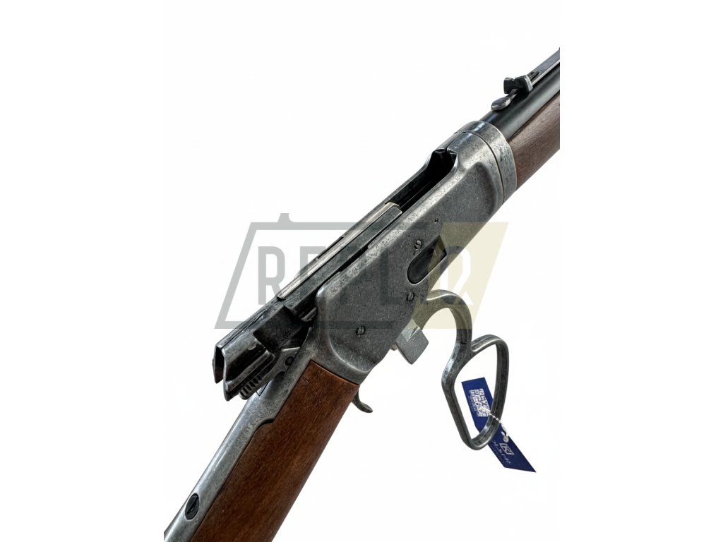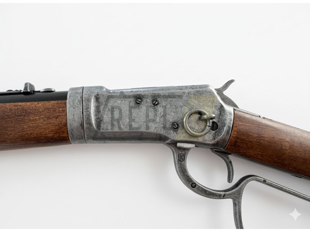 Replika pušky Winchester 82 cm v šedém provedení s možností nabití zbraně náboji, do kterých lze vložit kapslíky pro imitaci střelby. Jedná se o skvělou repliku od společnosti Kolser. Zbraň je dodávána bez nábojů, které lze do pušky vložit a simulovat tak nabití zbraně. Puška vyhazuje nábojnice stejně tak jako ostrý model zbraně. Navíc lze náboje osadit kapslíky a simulovat tak střelbu.