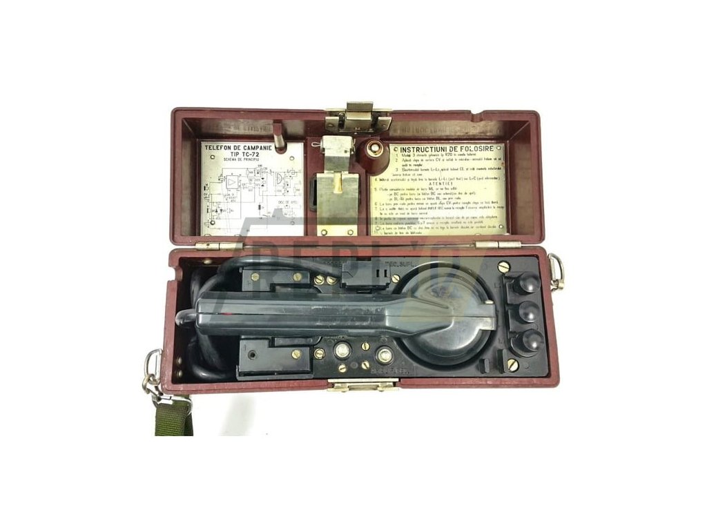 Originální telefon z rumunské armády používaný hlavně v období tzv. studené války. Bez popruhu.