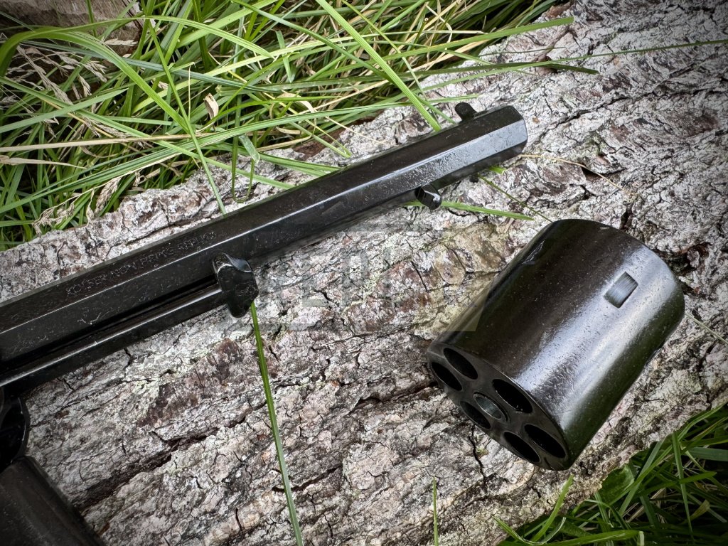 - Rozměry: 8palcová osmihranná hlaveň; celková délka úměrná původnímu designu.
