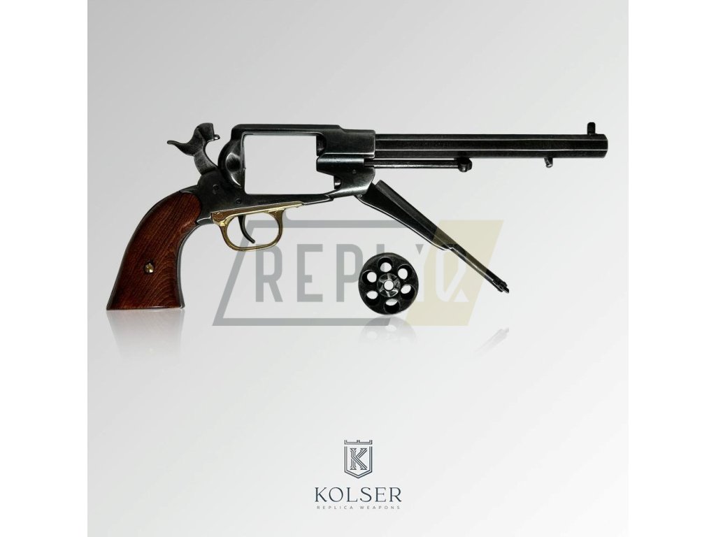 Objevte repliku Remington 1858 , nejautentičtější repliku ikonického perkusního revolveru, který transformoval vojenské střelné zbraně 19. století. Tato replika Kolser, vyrobená z vysoce kvalitních materiálů s realistickými povrchovými úpravami, zůstává věrná původnímu designu – od pevného rámu a odnímatelného válce až po charakteristickou osmihrannou hlaveň. Její hmotnost a rozměry jsou pečlivě sladěny s originálem, což poskytuje zážitek a realističnost. Revolver je vybaven funkčním mechanismem se simulovanou střelbou , který věrně napodobuje původní předlohu.