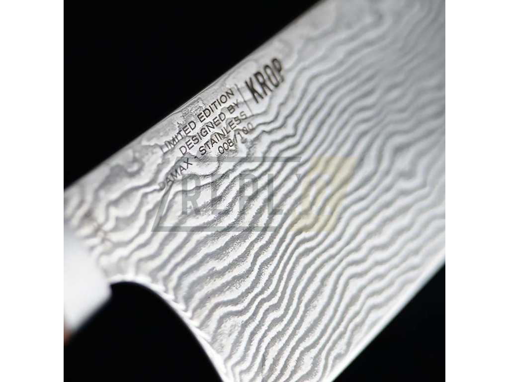 Nože Handmade KROP Damax jsou vybaveny čepelí z prémiové nerezové damaškové oceli DAMAX™, která se vyznačuje vysokou tvrdostí, dlouhou trvanlivostí ostří a vynikající odolností proti korozi. Díky těmto vlastnostem je ideální pro profesionální kuchyňské nože, outdoorové modely i exkluzivní limitované edice.