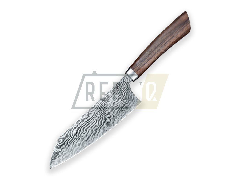 Nádherný ručně vyráběný nůž pro šéfkuchaře Santoku ze série Pirge Handmade KROP® je mistrovským spojením švédské damaškové nerezové oceli DAMAX™ a elegantního designu. Nabízí výjimečnou ostrost a prvotřídní kvalitu. NNůž Santoku je všestranný nůž, který pochází z Japonska. V překladu Santoku znamená „tři ctnosti“ - poradí si s krájením, drcením a sekáním masa, zeleniny a ryb. Čepel Sheepsfoot má rovné ostří a tupý hřbet, který probíhá rovnoběžně s ostřím a poté se stáčí dolů směrem k hrotu, jako pasoucí se ovce. Tento vzor čepele byl původně navržen pro provádění řezných a krájecích prací, kde by ostrá špička mohla vést k nežádoucímu propíchnutí nebo proříznutí. Tupý hřbet umožňuje bezpečné uchopení čepele prsty ("dusání") nebo vysunutí prstu pro zvýšení jemné kontroly nad ostřím při jemné práci. Damašková čepel z prémiové oceli v kombinaci se stabilizovaným Beech-Wood (bukové dřevo) a nerezovým bolstrem vytváří dokonalou harmonii stylu a funkčnosti. Každý kus je ručně broušený a díky vysoké tvrdosti dosahuje mimořádné ostrosti, která vám usnadní každé krájení. Tento nůž je jednoznačně exkluzivní a sběratelský kousek, který nejen skvěle slouží, ale také vypadá jako umělecké dílo. Skvělá volba pro milovníky ručně vyráběných nožů!