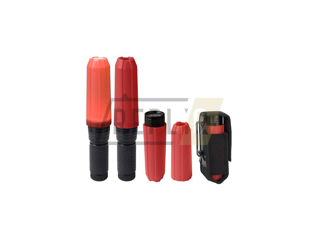Přednostítohoto řešení je, že signální kužel nezabírá v pouzdře žádné další místo, neboť do něj lze tuto svítilnuuložit a současně tvoří zpevnění pouzdra zvyšující ochranu svítilny. Kužel má na vrcholu otvor,který umožňuje používat svítilnu i pro běžné osvětlení bílým světlem bez nutnosti sejmutí kuželu(kontrola dokladů, kontrola interiéru vozidla atd.). Výborný nástroj nejen pro dopravní policii.
