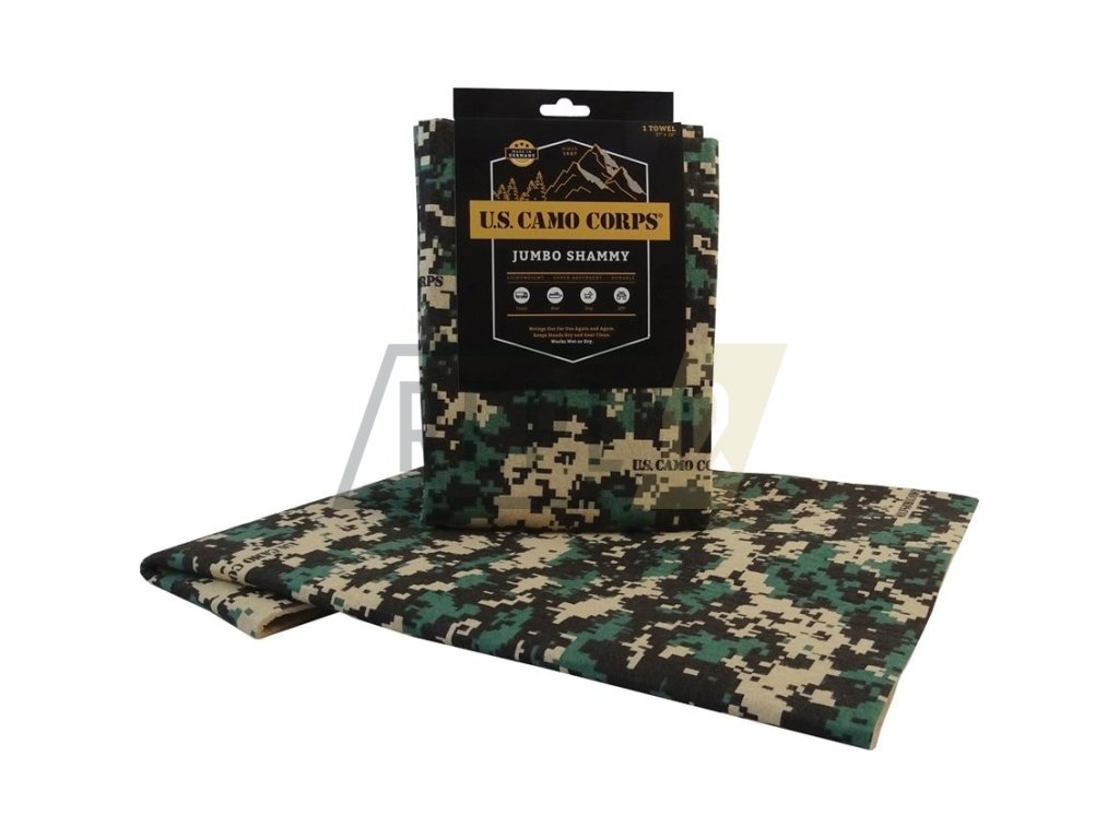Ultralehký a extra savý ručník v zelené digitální kamufláži. Bez problémů funguje i v mokrém stavu. Dodáván s karabinou.
