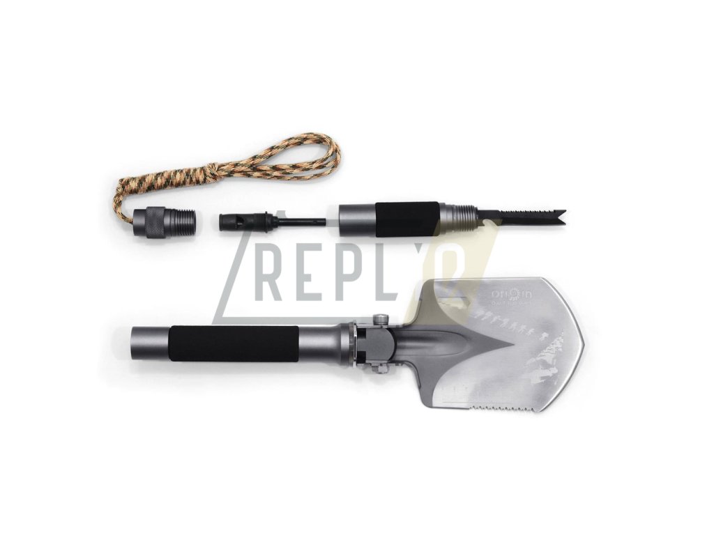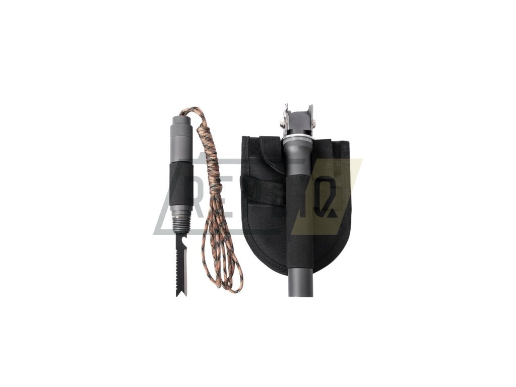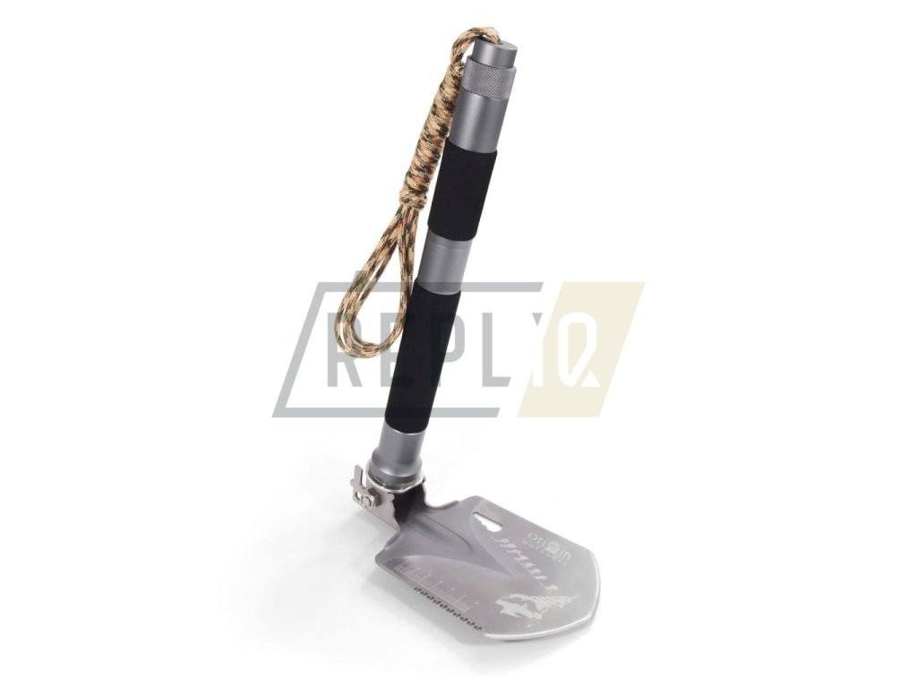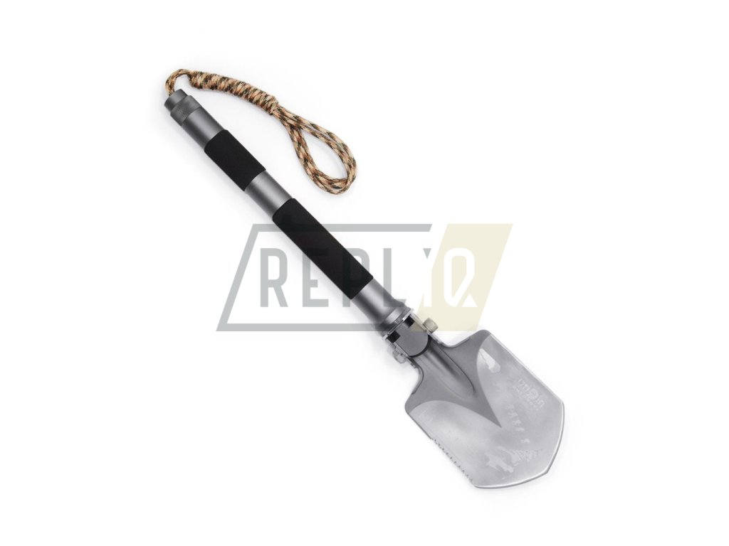 Čepel z kalené bórové oceli, rukojeť z tvrzeného hliníku. Lopata na přežití 10 v 1 má více než 10 funkcí: paracord (cca 3 m dlouhý), zapalovací ocel, nouzová píšťalka, nůž, pila, sekera, motyka, lopata, kladivo, řezačka drátu, měřící nástroj, auto nouzové kladivo a hasák (4, 5, 6, 8, 10 mm). Nejjednodušší instalace díky závitu s malou mezerou.