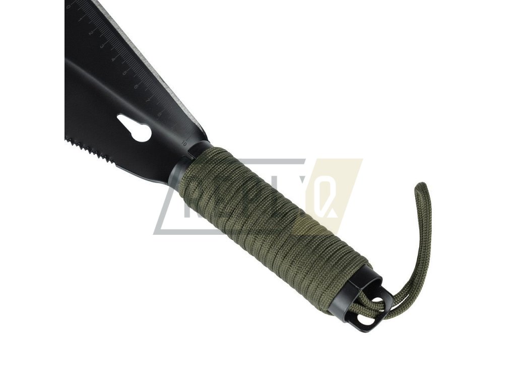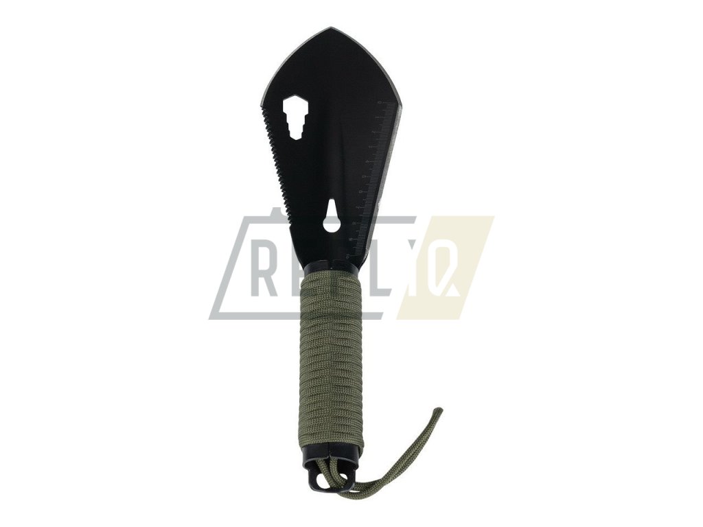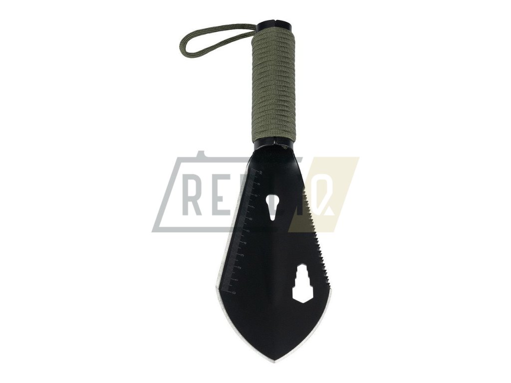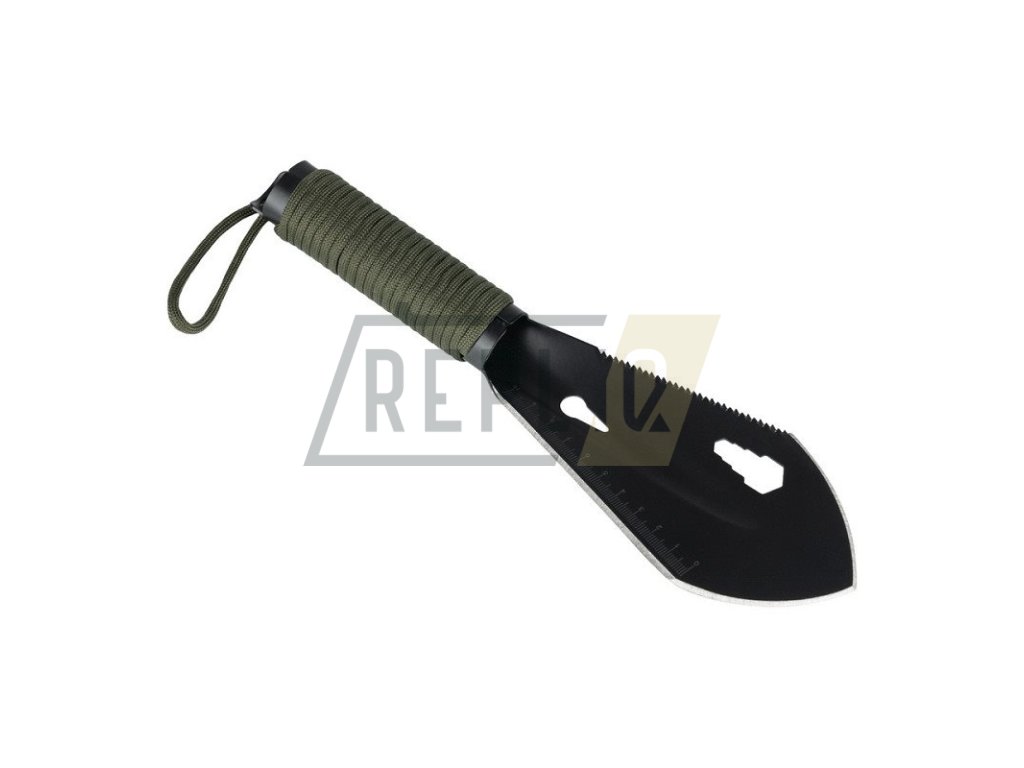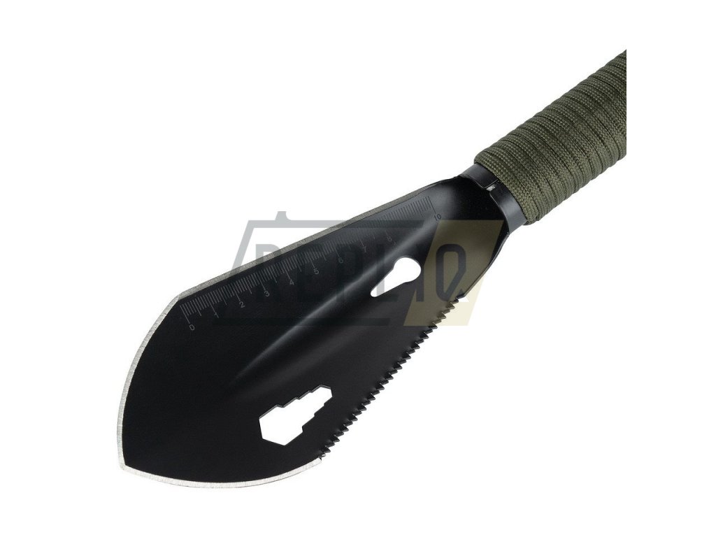 Malá a praktická lopata je velmi praktickým společníkem pro menší trekkingové výlety přírodou. Se sedmi funkcemi lze lopatku používat velmi univerzálně. Použití jako lopatka, vytahovač, nůž, pilka, klíček a pravítko. Vyrobeno z vysoce kvalitní nerezové oceli nože, lopatka je velmi odolná vůči rzi. Rukojeť je obalena 2 metry dlouhým paracordem, který je velmi užitečný pro nouzové situace. S praktickým poutkem na ruku a přiloženou nylonovou taškou.