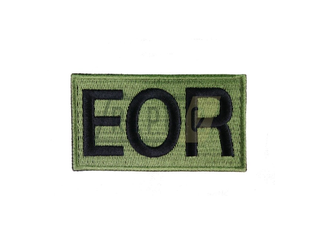 Klasická nášivka s kvalitní výšivkou - černým nápisem EOR na zeleném podkladu. EOR je zkratka pro Explosive Ordnance Recognition (Reconnaissance).