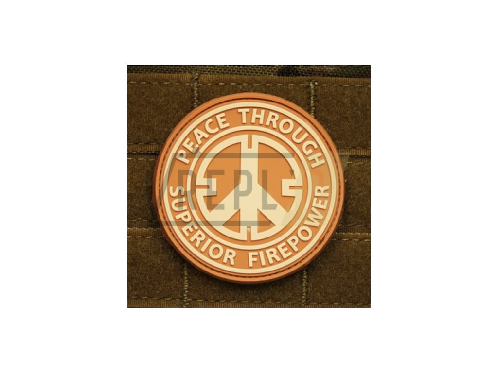 Plastová nášivka s motivem"Peace through superior firepower". Průměr cca 6 cm, na rubu se suchým zipem.