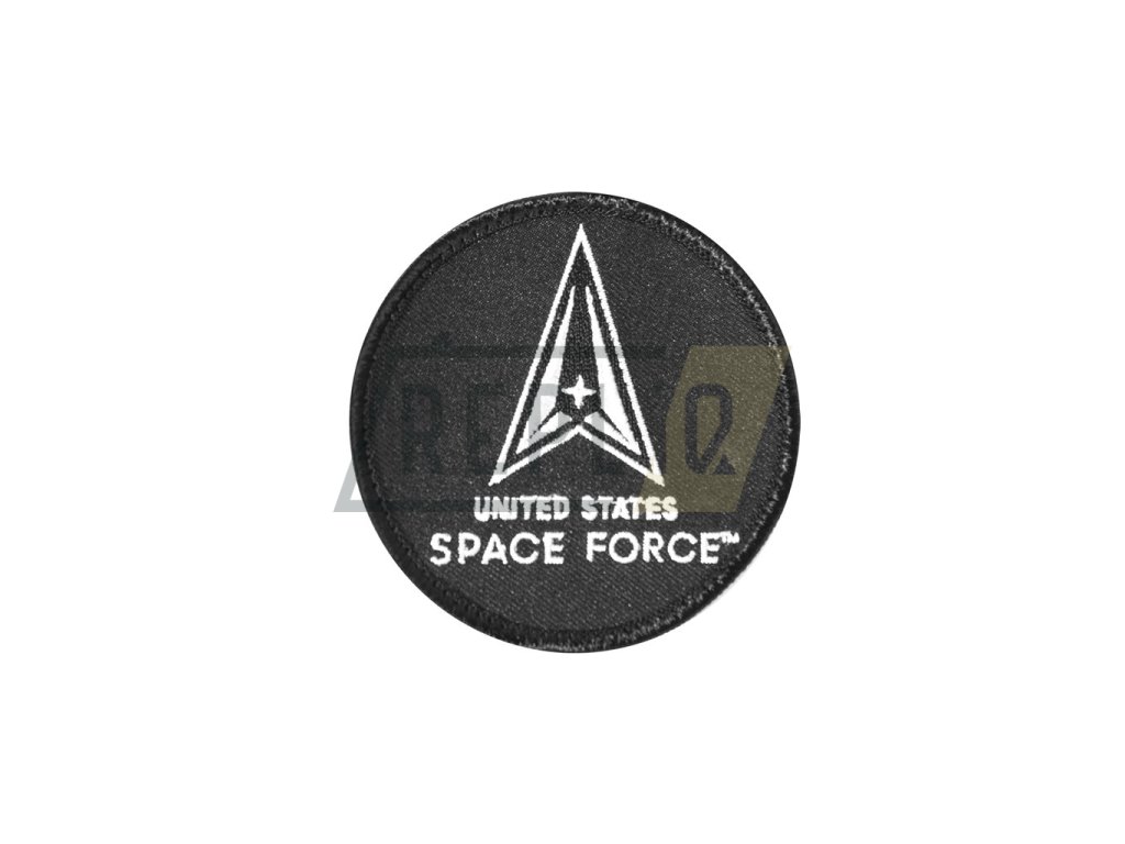 Nášivka se suchým zipem, na které je na černém pozadí symbol Delta Space Force a nápis United States Space Force.