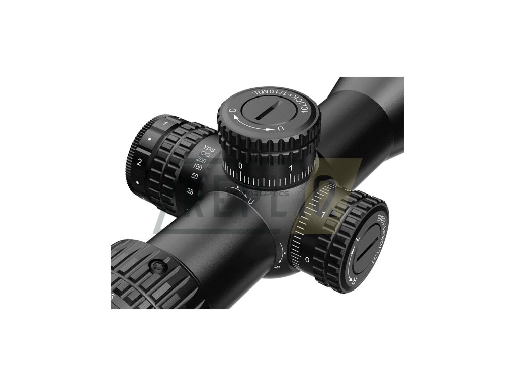 Uzamykatelné rektifikační věžičky poskytují výškovou a stranovou korekci v rozsahu 17.5MRAD při jednom kliku rovnajícímu se 1/10MRAD a díky funkci Zero Reset si je můžete vynulovat na požadované hodnoty. Paralaxa je stavitelná od 10 yardů do nekonečna.